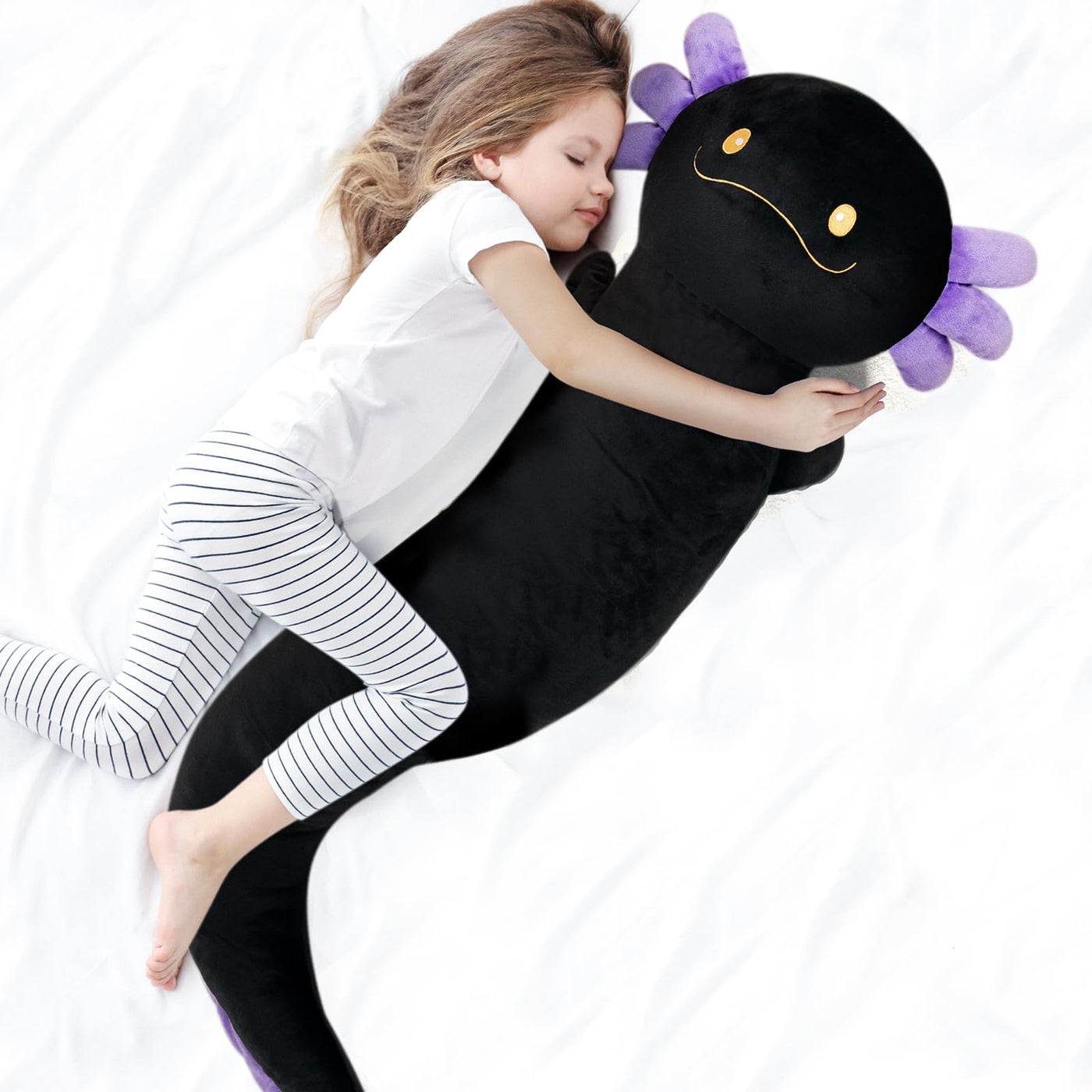 48 Inch Giant Axolotl Plush Stuffed Animal, Big Black Axolotl Glow In The Dark Fluorescent Plushies, Jumbo Axolotl Body Pillow G