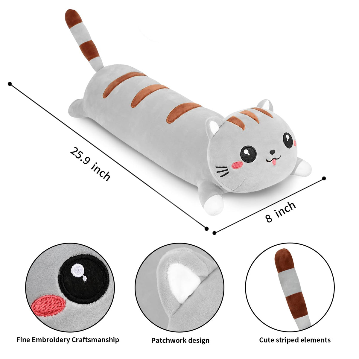 Afan Cute Long Cat Plush Kawaii 25.9' Body Pillow Cat Stuffed Animals Soft Plushies Cuddly Cotton Kitten Sleeping Pillow Stuffe