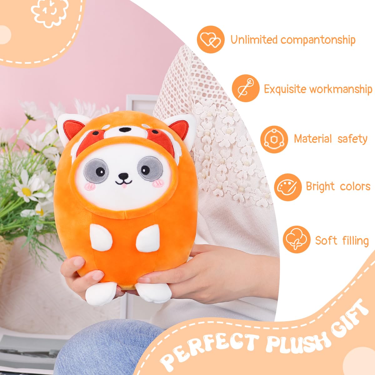 Style: Red Panda Aixini&Nbsp;Cute Red Panda Plush Pillow 8' Lesser&Nbsp;Panda Stuffed Animal, Soft Kawaii Plushie With Red Panda Outfit Costume Specifications:&Nbsp;Size: 8 Inches Height.&Nbsp;Made Of High-Quality, Safe And Environmentally-Friendly Soft Plush Fabric Pp Cotton Filling. Each Seam Is Tight And Well Stitched. Machine Washable. Safe For Babies. Why Our Baby And Girl Need:&Nbsp;For Girls, This Plush Pillow Pet Toy Will Be A Great Gift For Girls. Because It Will Be A Great Companion For Your Baby Girl. Easy To Clean:&Nbsp;Our Plush Pillows Are Easy To Clean And Machine Washable. Items In The Package: Plush Red Panda * 1