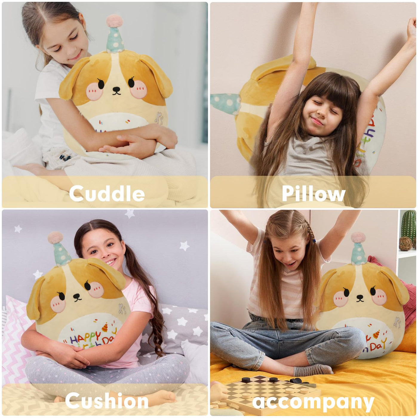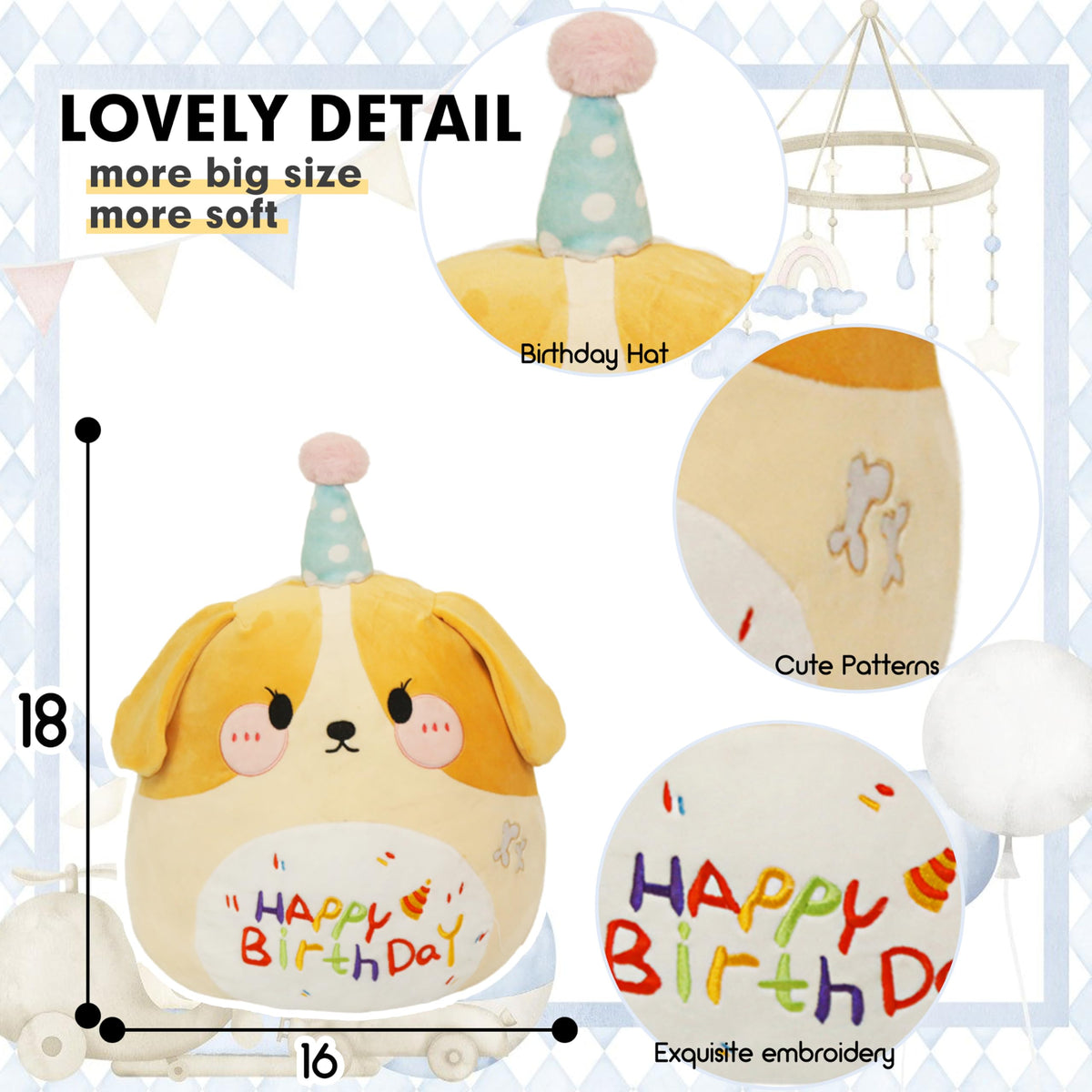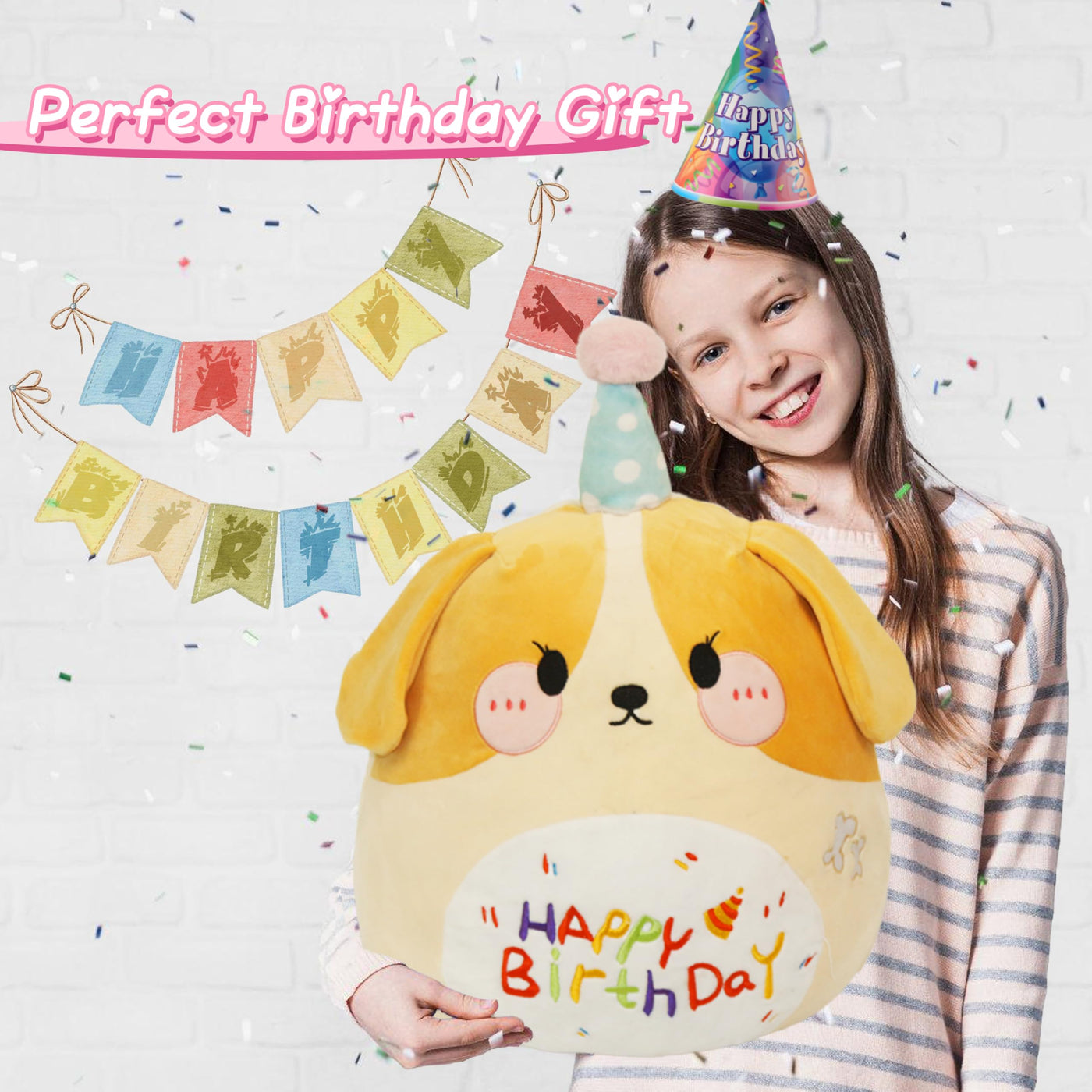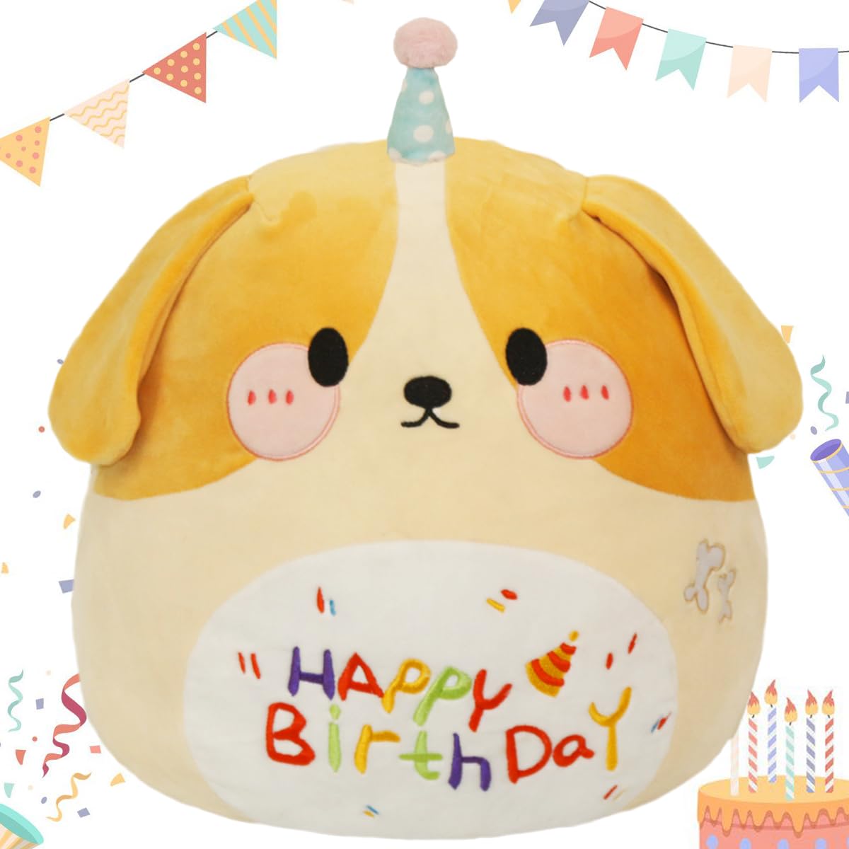 Arelux 18In Cute Dog Plush Soft Dog Stuffed Animal Birthday Pillow Puppy Plushie Toy Happy Birthday Party Decoration Plushies Fr