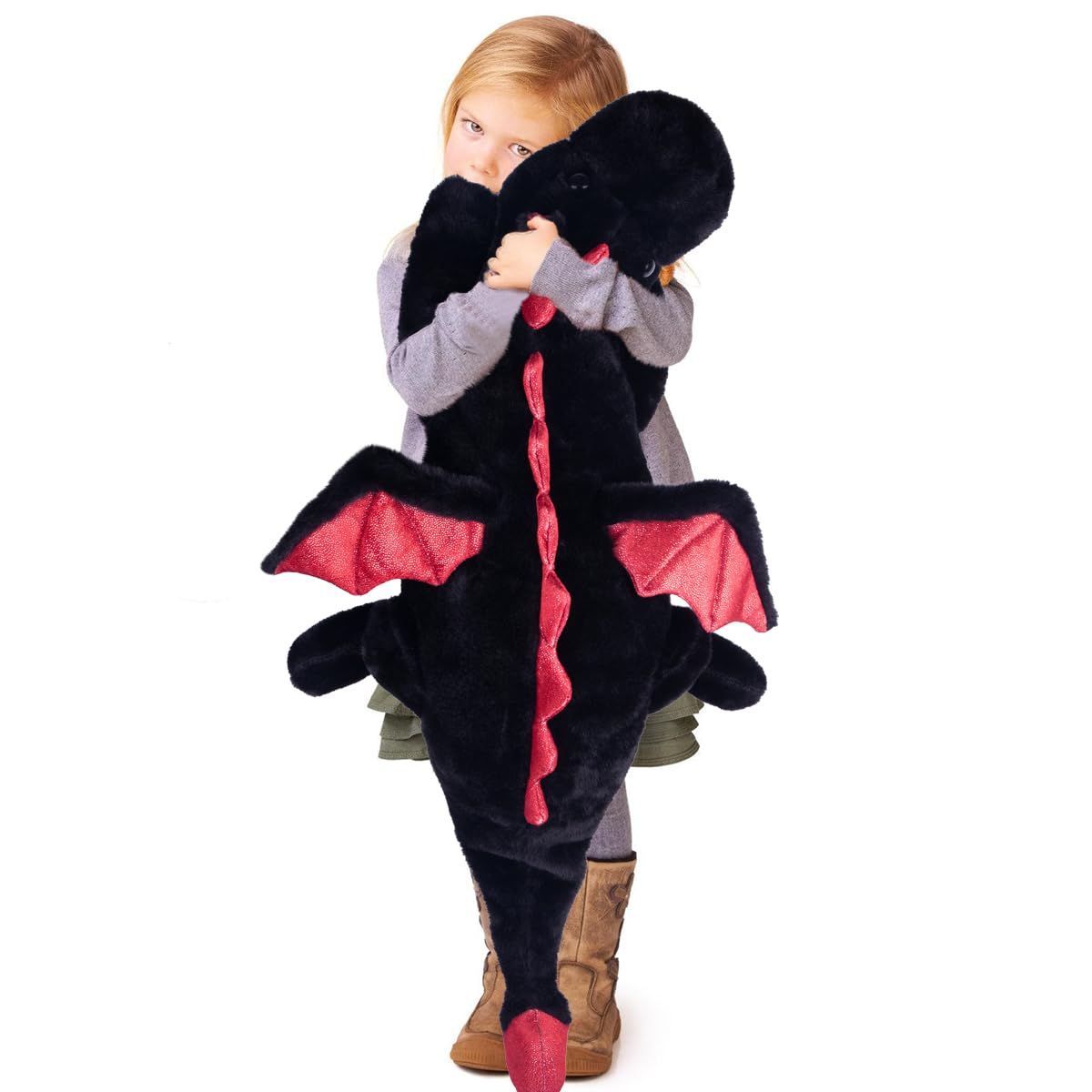Arelux Large 37In Cute Dragon Stuffed Animals Plush Toy Soft Black Pterosaur Plushie Giant Fuzzy Dinosaur Pillow Plushies With W