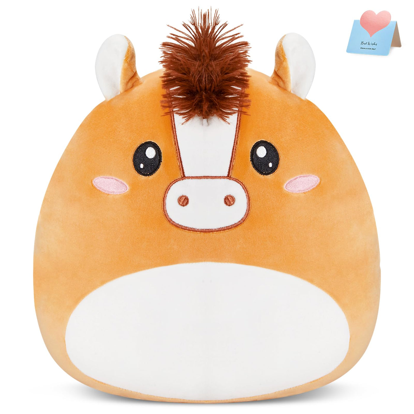 Athionsu 12 Inch Horse Plush Pillow Soft & Cuddly Stuffed Horse Soft Squishy Birthday For Toddler Kids Boys And Girls