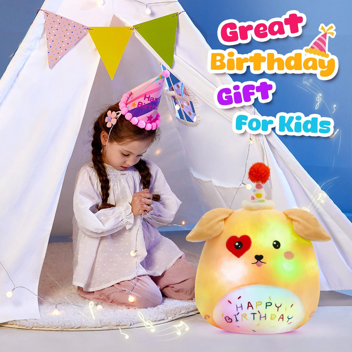 Bstaofy Light Up Music Happy Birthday Puppy Dog Soft Plush Pillow Birthday Stuffed Animal Dog Birthday Gift For Toddler Kids Gir