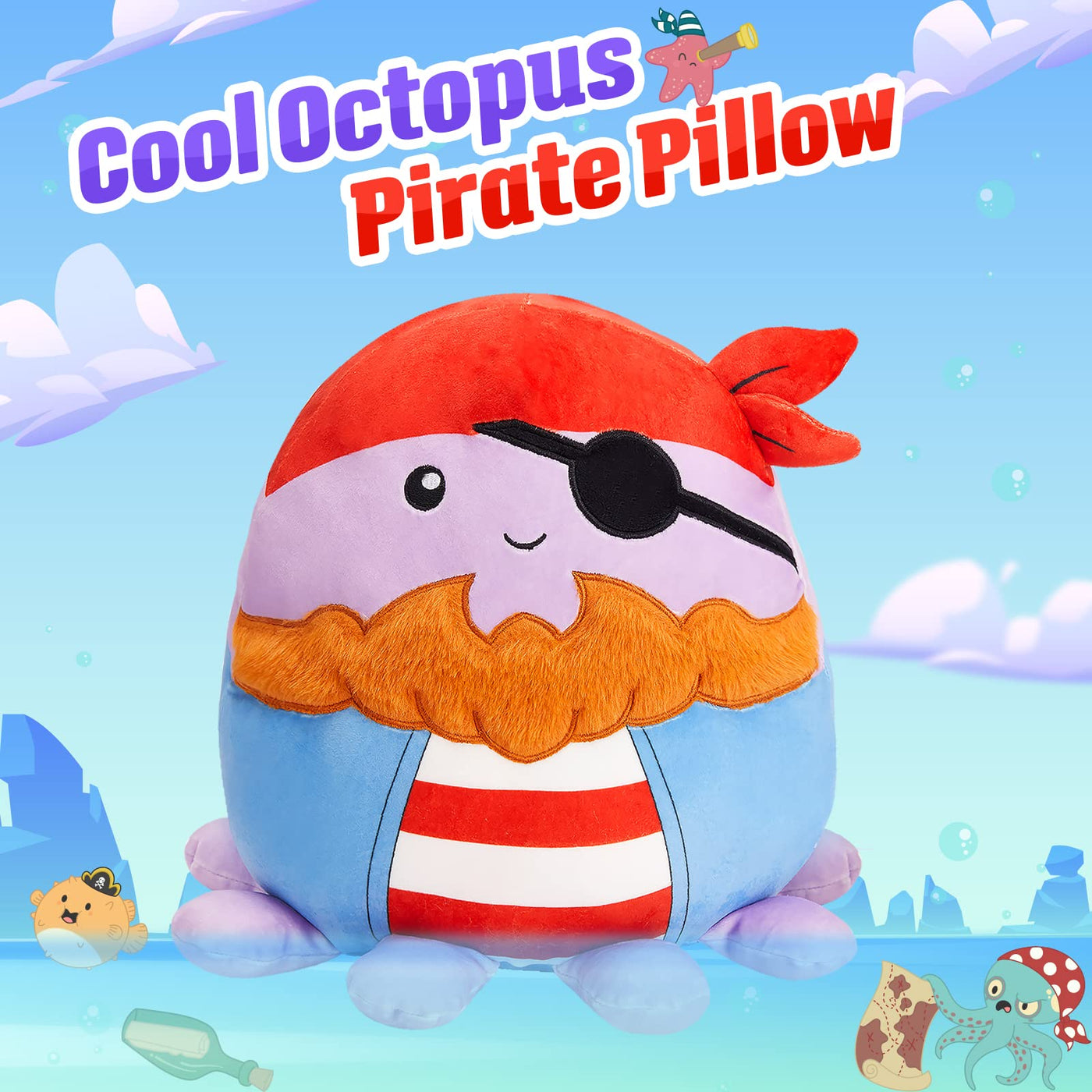 Bstaofy Pirate Octopus Plush Pillow Cute And Soft Octopus Stuffed Animal Hugging Pillow Sea Animal Plush Toys Birthday Gifts For Kids Boys Girls,12