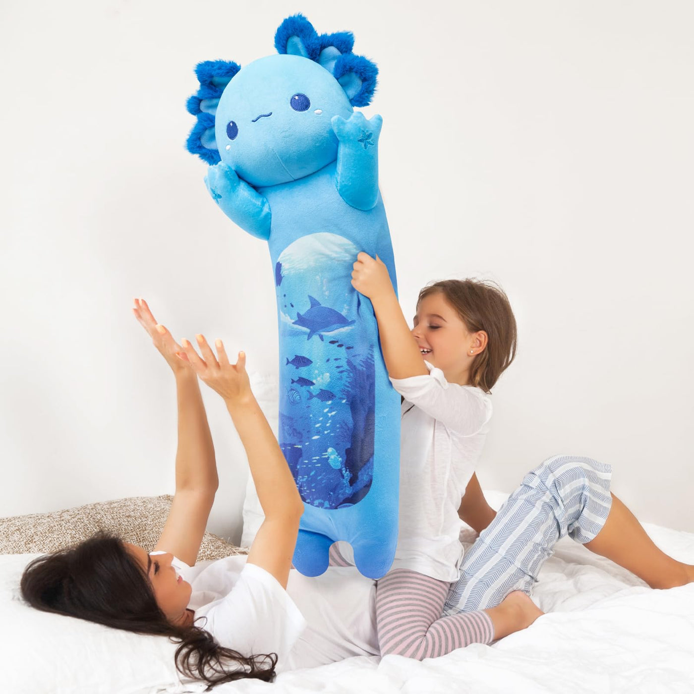 Q: Is this plush pillow suitable for all ages?A: Yes, the Long Axolotl Plush Body Pillow is designed to be a perfect companion for kids, girls, boys, and axolotl lovers of all ages, making it an ideal gift for various occasions.