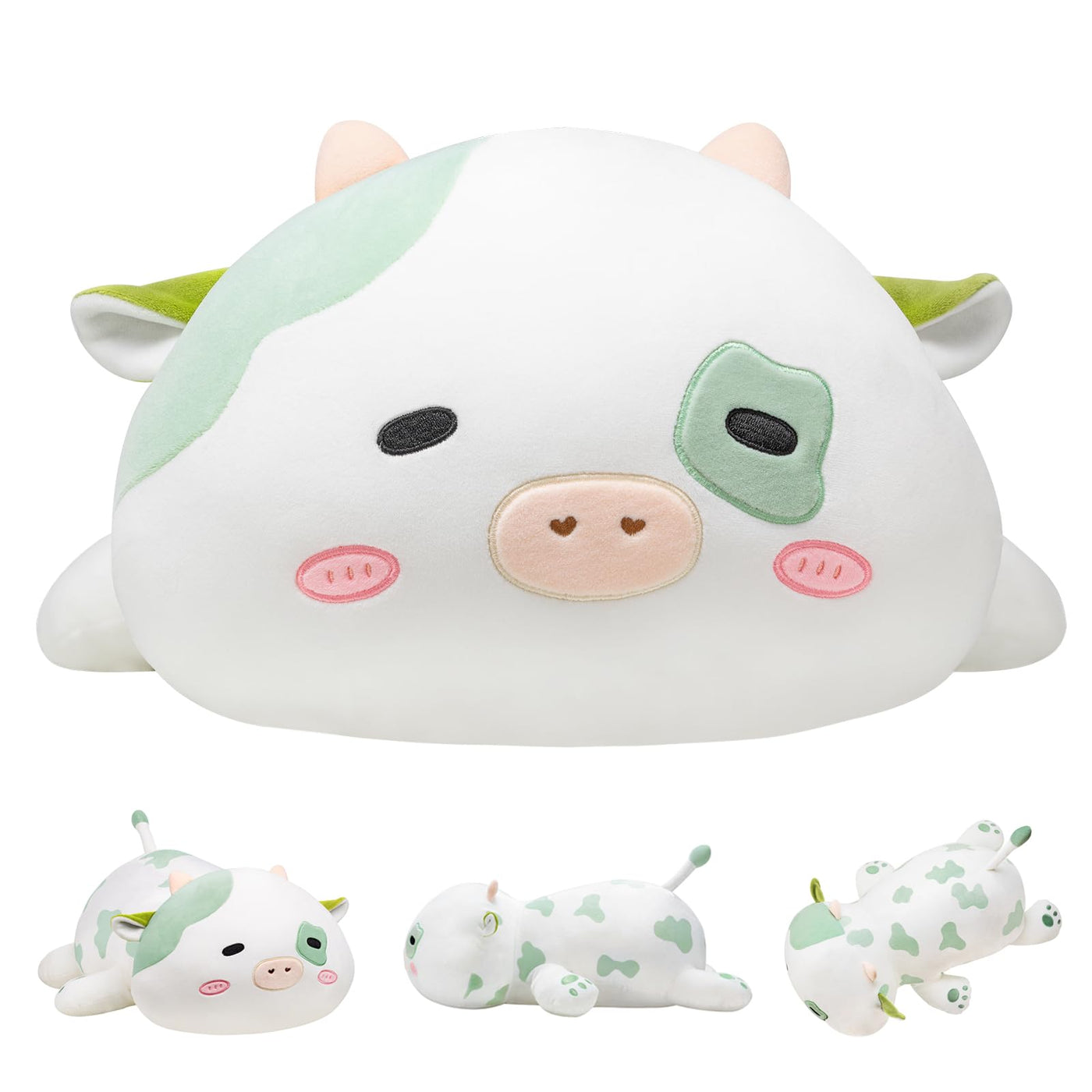 Cute 4Lb Weighted Stuffed Spotted Cow Plush, 23 Inch Green Cow Weighted Pillow For Adults & Kids