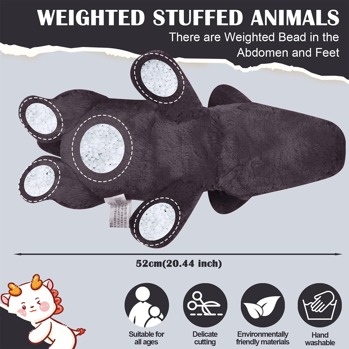 Gisqis Black Dragon Plush 19' Cute Weighted Dragon Stuffed Animal Stuffed Dragon Plush Toy Kawaii Dragon Plushie Hugging Pillow