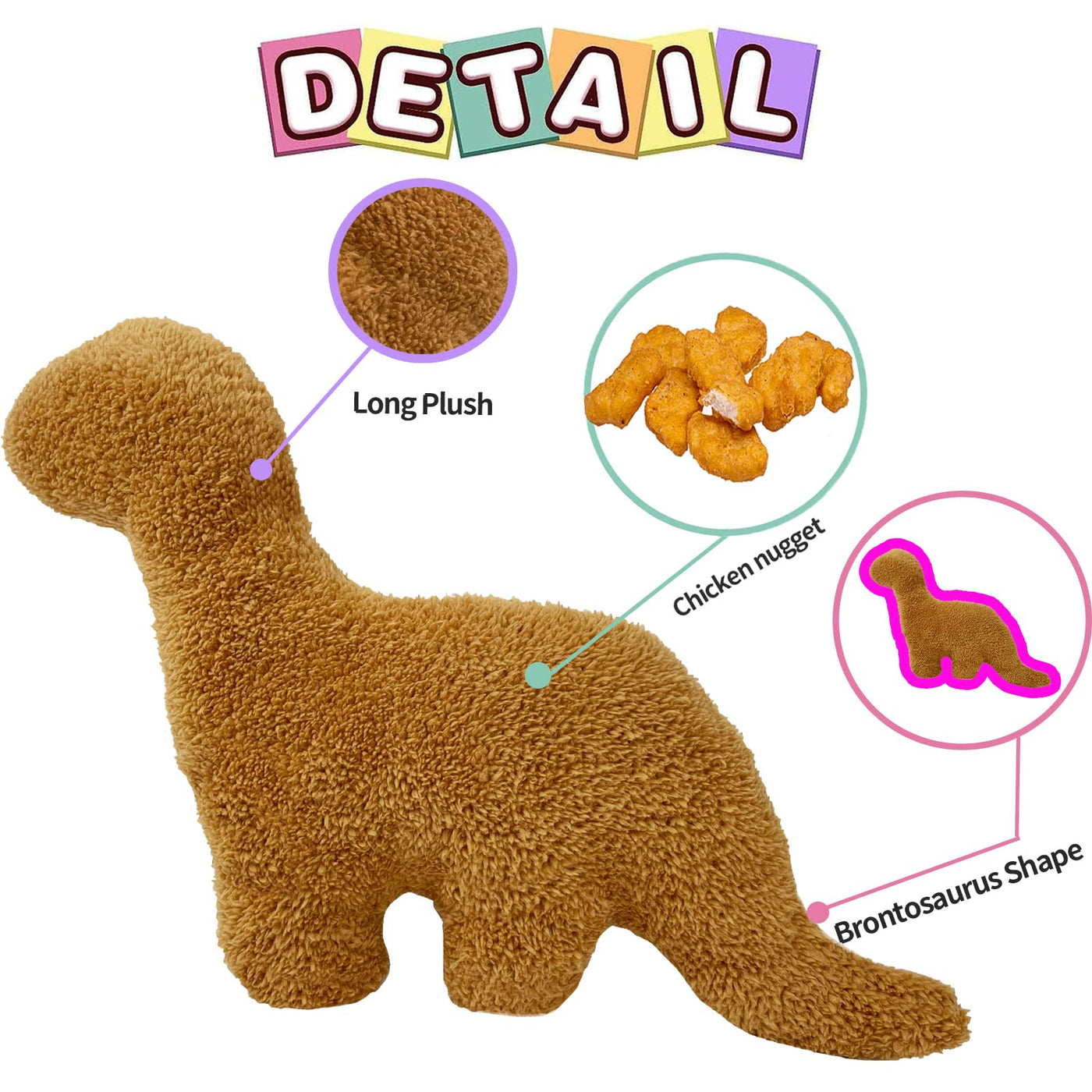 Isaacalyx Dino Nugget Pillow, Brontosaurus-16 Inch Soft Dinosaur Chicken Nuggets Pillow For Birthday Gifts, Dinosaur Theme Party