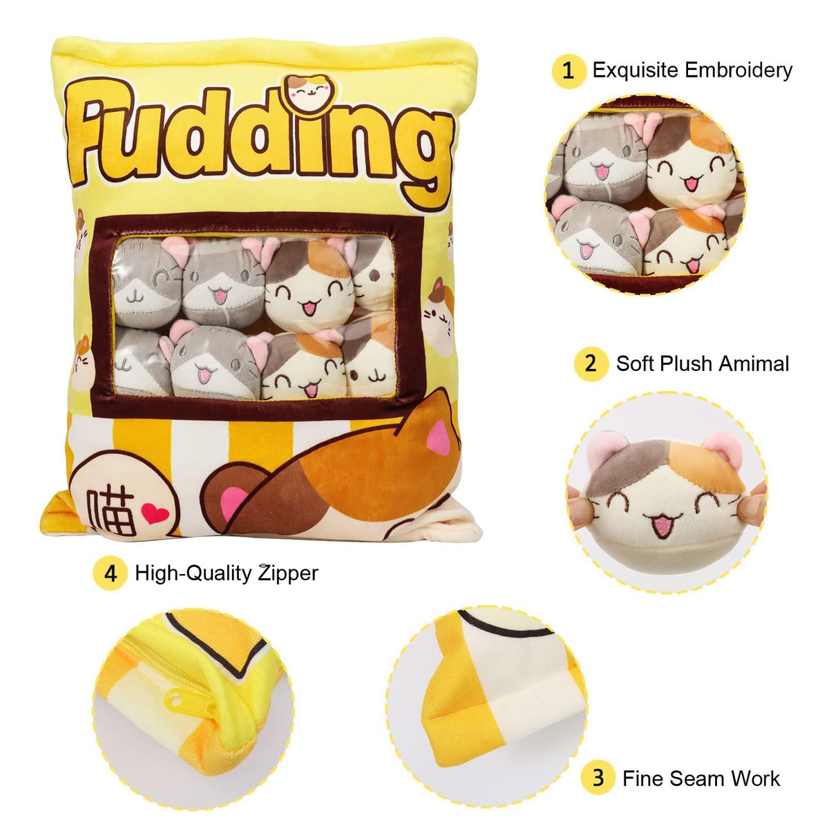Q: How many dolls are included with the pillow?A: Each JILPAK Plush Pillow comes with 8 small stuffed cat plush dolls, providing both a comfortable pillow and adorable toys for kids.