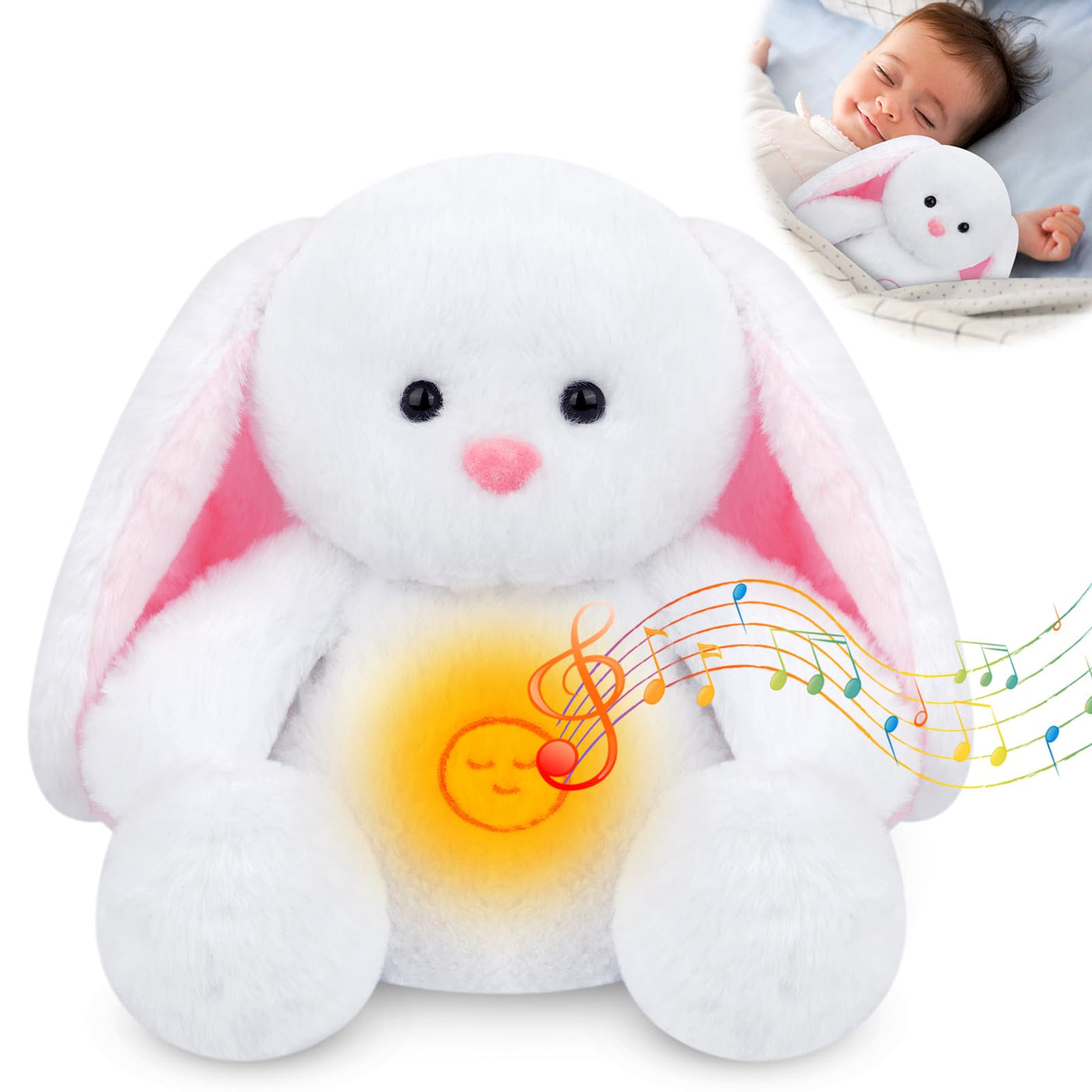 Breathing Bunny Stuffed Animal, 10In White Breathing Stuffed Animal With Soothing Sound Music Lighting, Huggable Sleeping Rabbit Plush Pillow Birthday Gift For Kids Toddlers