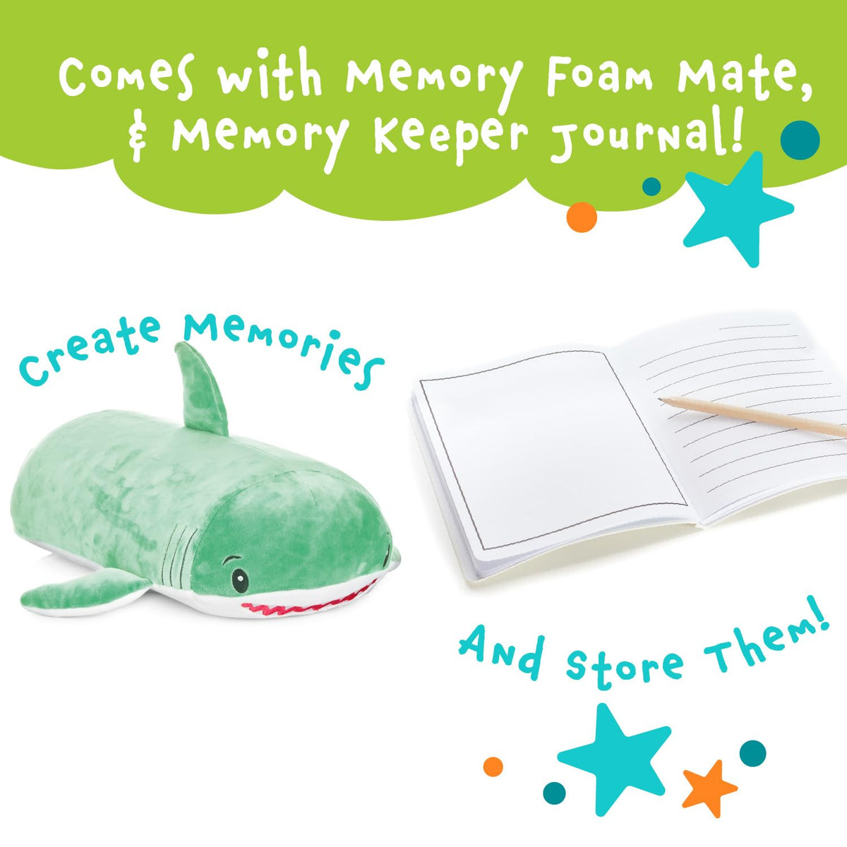 Q: Does the MEMORY MATES Jake The Shark come with any accessories?A: Yes, the MEMORY MATES Jake The Shark includes a special belly pocket to store small toys or treasures, as well as a daily journal for kids to document their adventures together.