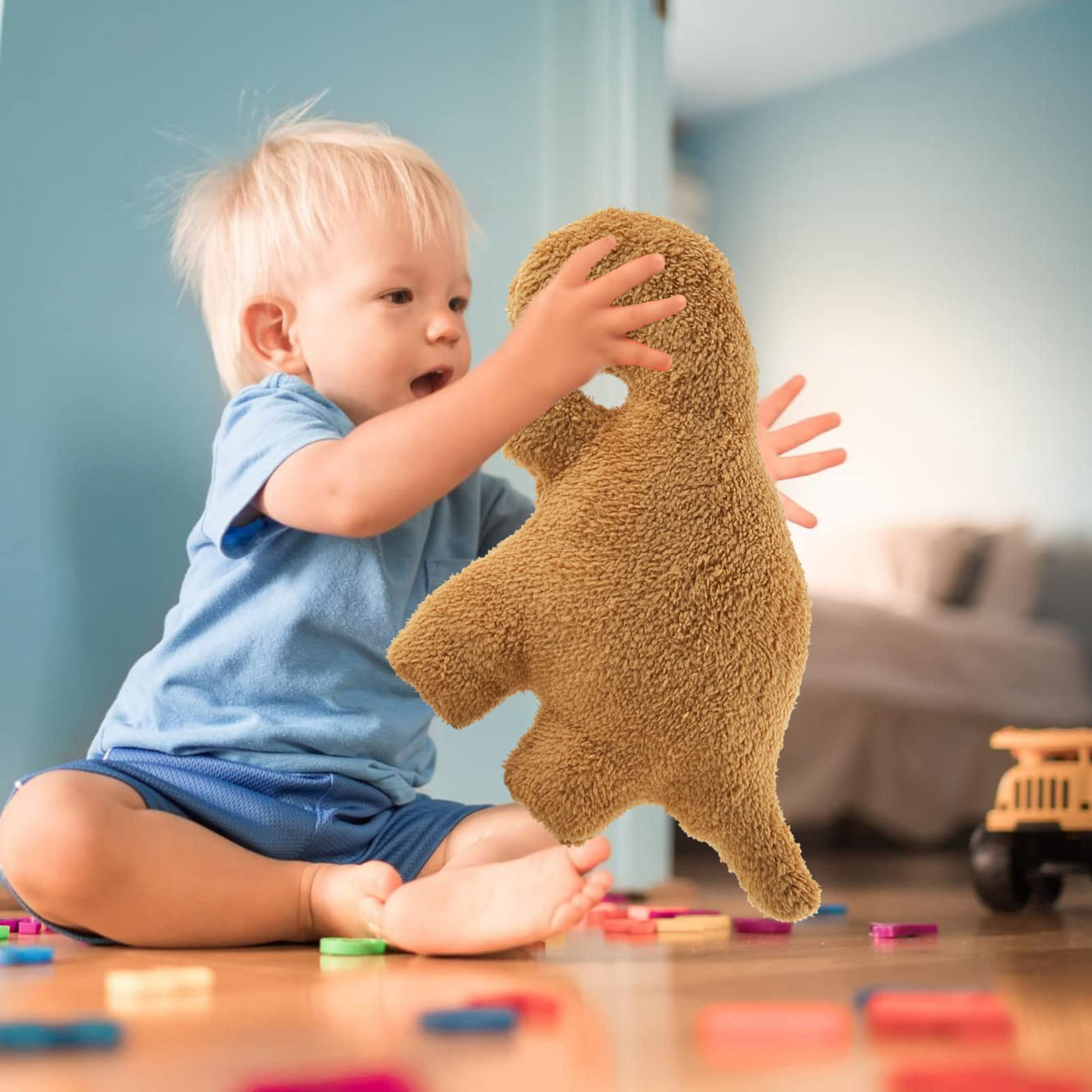 Q: What material is the Dino Nugget Pillow made from?A: This plush pillow is made from high-quality cotton, ensuring a soft and cozy feel that's perfect for kids and adults alike.