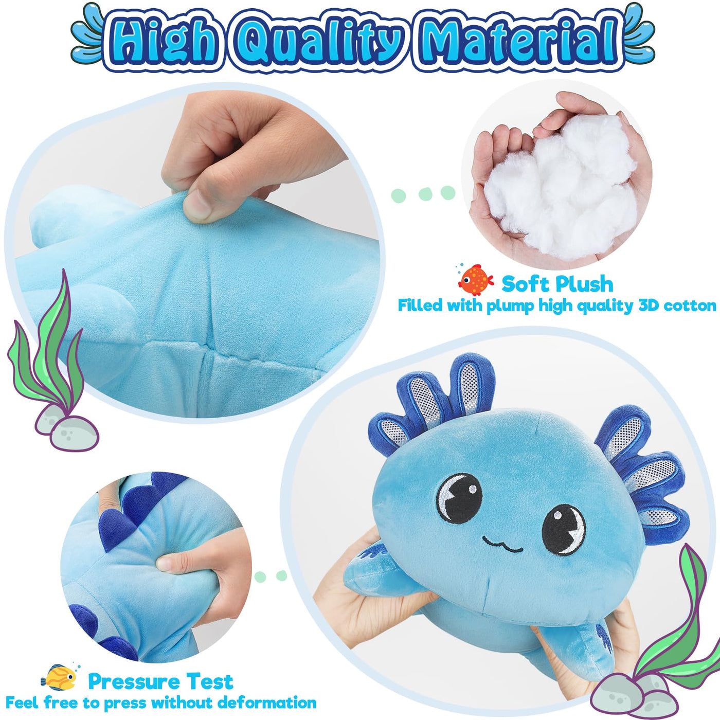 Officygnet Cute Blue Axolotl Plushie, Soft Stuffed Animal Salamander Plush Pillow, Kawaii Plush Toy For Kids- Blue