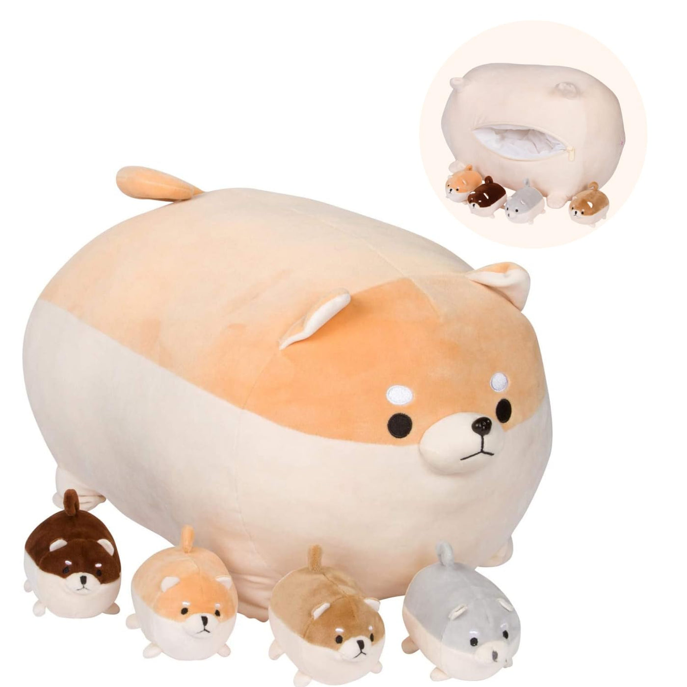 Pixiecrush Stuffy Little Toys For Ages 3-8 - Cute Mommy Shiba Inu With 4 Puppies - Magical Pillow Plushie - Enchanting Stuffed C