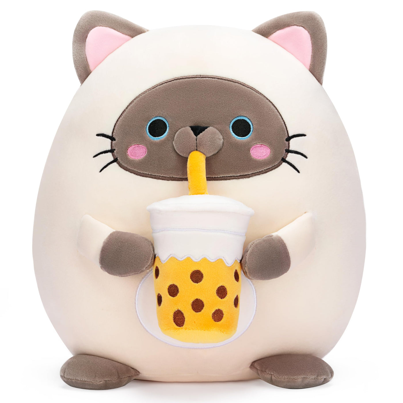 Playnics Original 13-Inch Large Siamese Cat Plush Pillow Stuffed Animal Toy,Big Size Cute Soft Fat Hugging Cuddle Huggable Plush