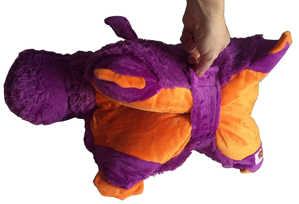 Q: How does the Zoopurr Pets Plush Toy transform into a pillow?A: The Zoopurr Pets Purple Dragon Plush Toy features a versatile design that allows it to easily transition from a stuffed animal into a cozy pillow, perfect for playtime or naptime.