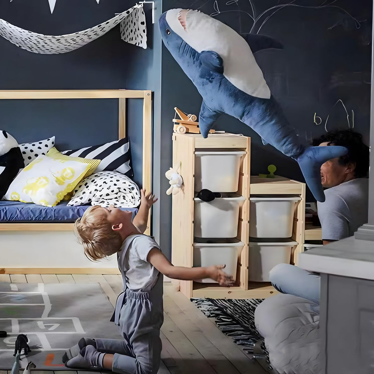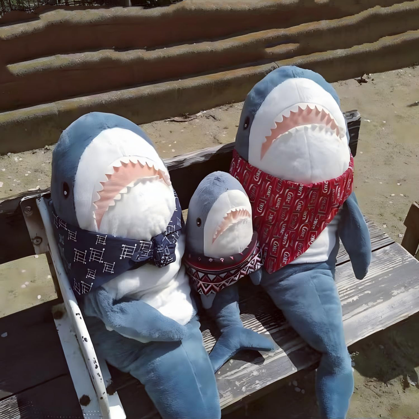 Q: What materials are used in the Ryttir Shark Stuffed Animals?A: The Ryttir Shark Stuffed Animals are made from a soft two-color short plush, featuring dark blue and light blue colors that represent the sea, along with a cotton filling for a comfortable hug.