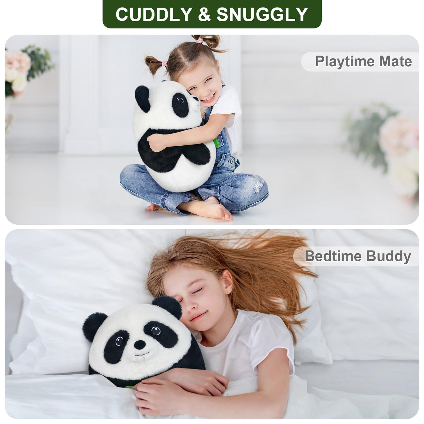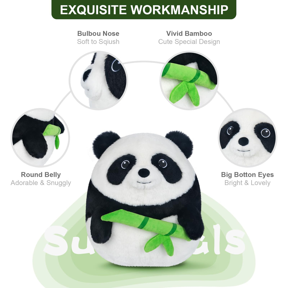 Q: Can the panda plush be used as a decorative pillow?A: Absolutely! The SuzziPals Panda Stuffed Animal not only serves as a cuddly companion but also acts as a charming decorative pillow for your bed, couch, or any room in your home.