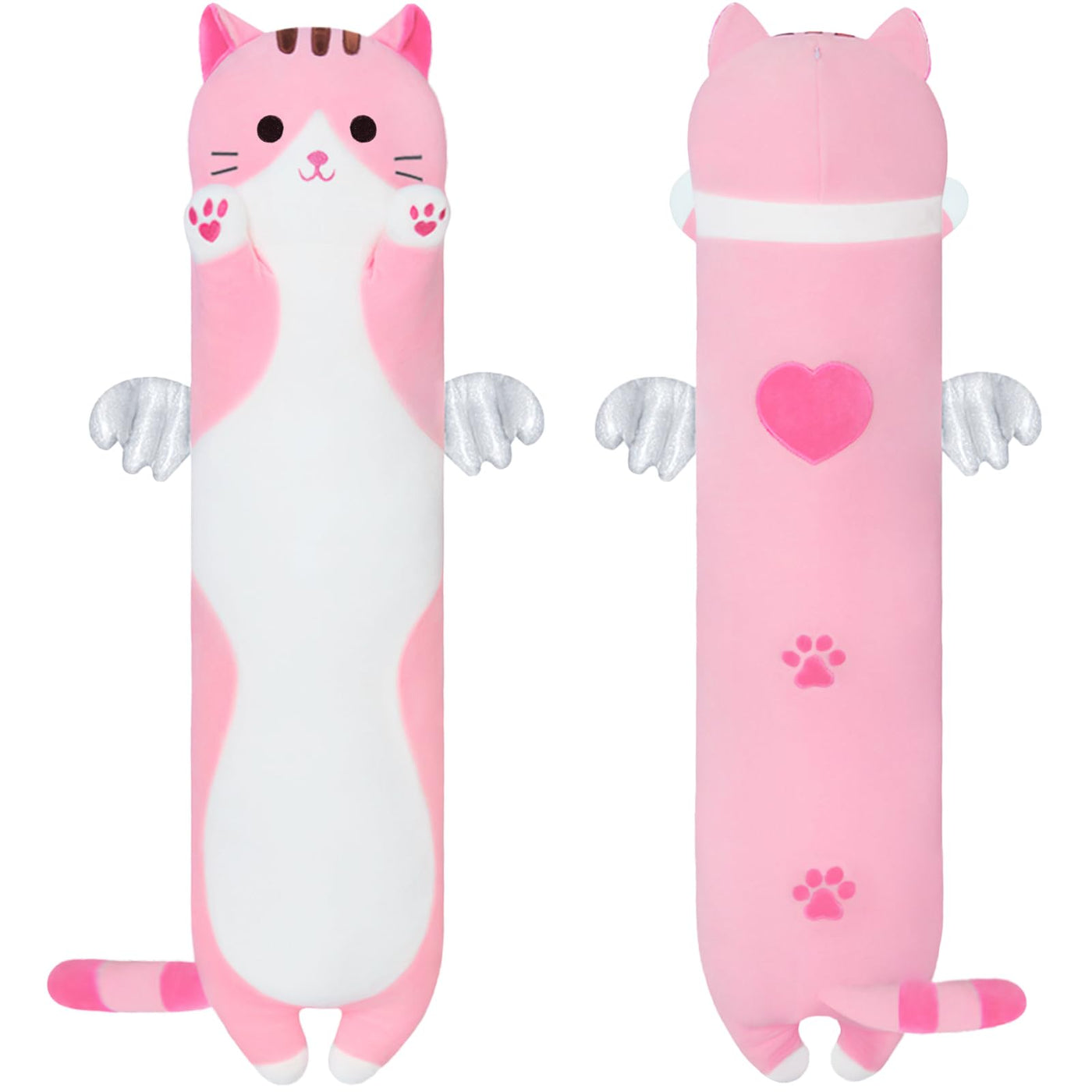 Yeqivo Cute Cat Plush Pillow, Pink Long Stuffed Animal Soft Kitten Plushie Kawaii Cat Stuffed Toy For Kids, Girlfriend (110Cm/43
