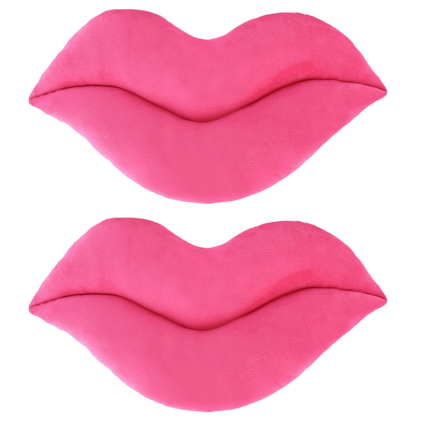 Zhidiloveyou 2Pcs 11 ' Lip Plush Pink Small Decor Pillow Cute Hug Toy Soft Lip Shaped Cushion