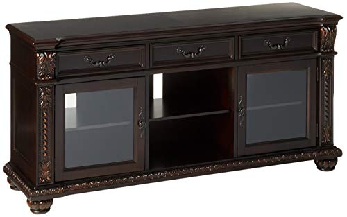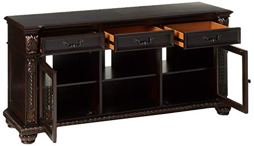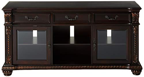 The Anondale Traditional Tv Stand Is In Cherry Finish. 3 Drawers And 2 Glass Doors With 1 Shelf Offer A Great Storage Capabilities. It Is Good For Your Room With Your Tv And Any Media Needed Storage.