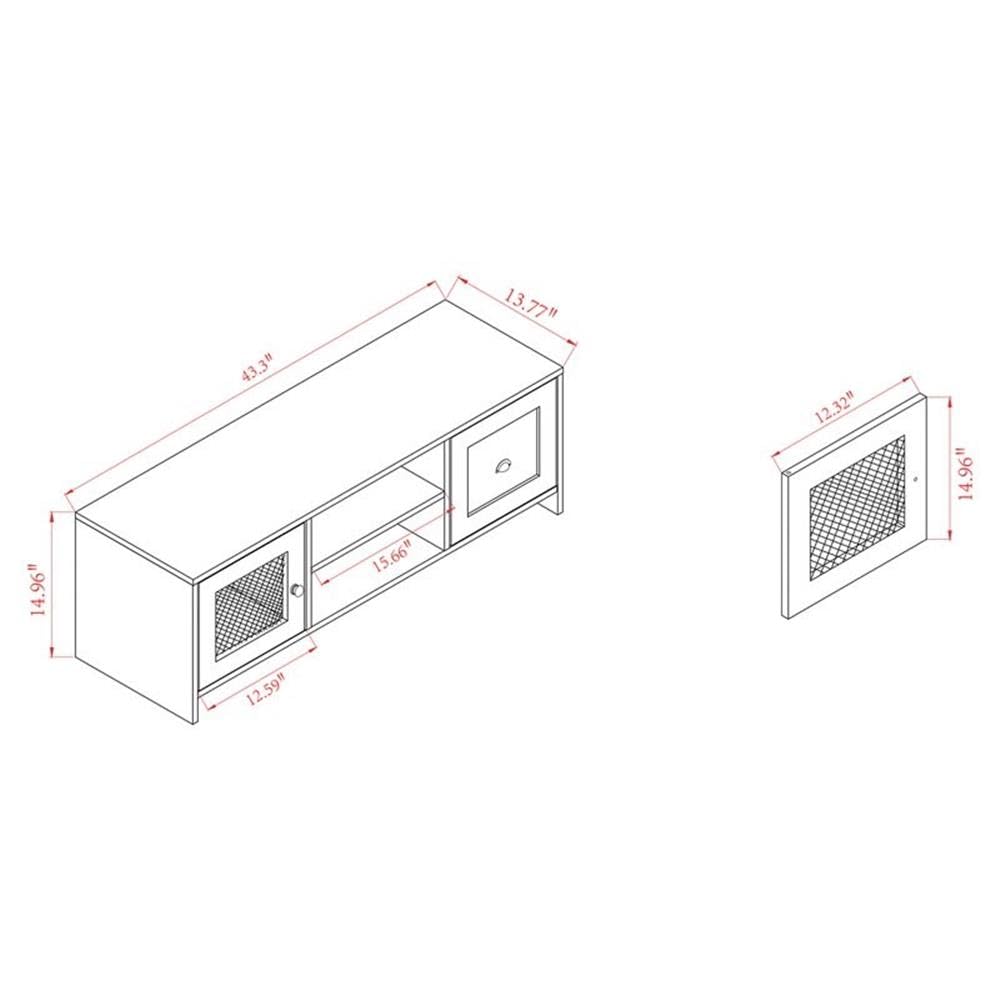 Generate an atmosphere of warmth in your space with the rustic character of the Connell TV stand. Made in China, this stunning piece is comprised of a sturdy wood frame embellished with metal accents. Two open shelves offer space to organize media devices, while two additional shelves behind the doors provide convenient storage. The Connell requires assembly and features two cord management holes on its back panel for quick and easy setup. With an efficient, streamlined design, the Connell TV stand elevates any space.FeaturesModern industrial TV standConstructed from engineered woodTwo (2) open shelves and two (2) enclosed shelves behind the doorsTwo (2) cord management holesMetal door handlesMaterial: MDF, MetalColor: Natural Brown, BlackOverall Dimensions: 15.00" High x 43.30" Wide x 13.80" Deep;Assembly Required: YesMade In China