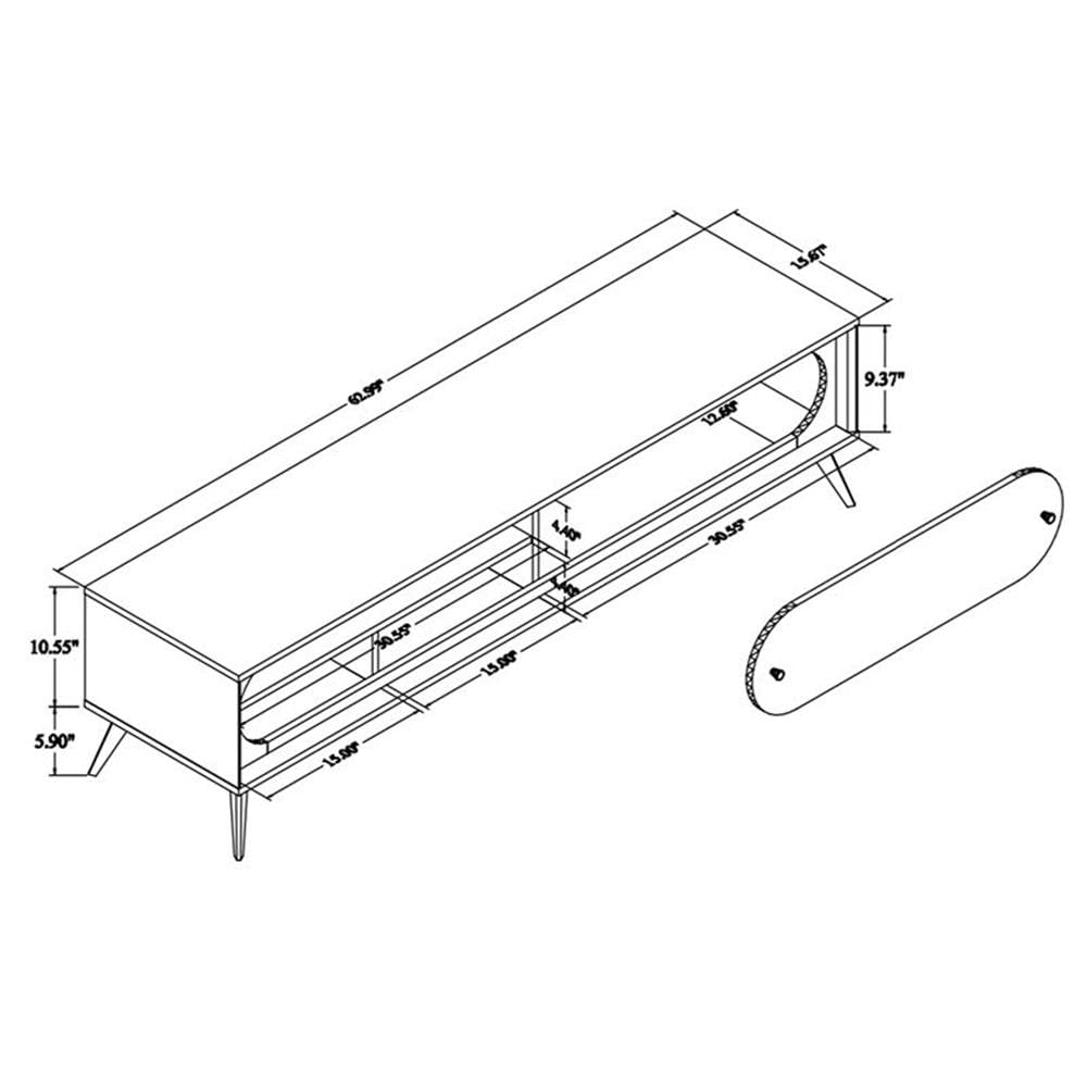 Inspired by mid-century design, the Dena TV stand provides your home with an attractive yet practical focal point. Made in Malaysia, this TV stand is constructed from sturdy wood. A large open shelf and three additional shelves behind the sliding door provide easy storage for all your media devices. Requiring assembly, the Dena also features a cord management hole in its back panel for easy setup. Angled legs complete the retro silhouette, making the Dena TV stand an eye-catching addition to any space.
