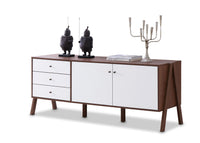 Baxton Studio FP-6780-Walnut/White TV Stand, 18.8LX65.4WX25.78H, White and Walnut