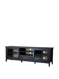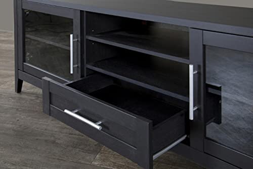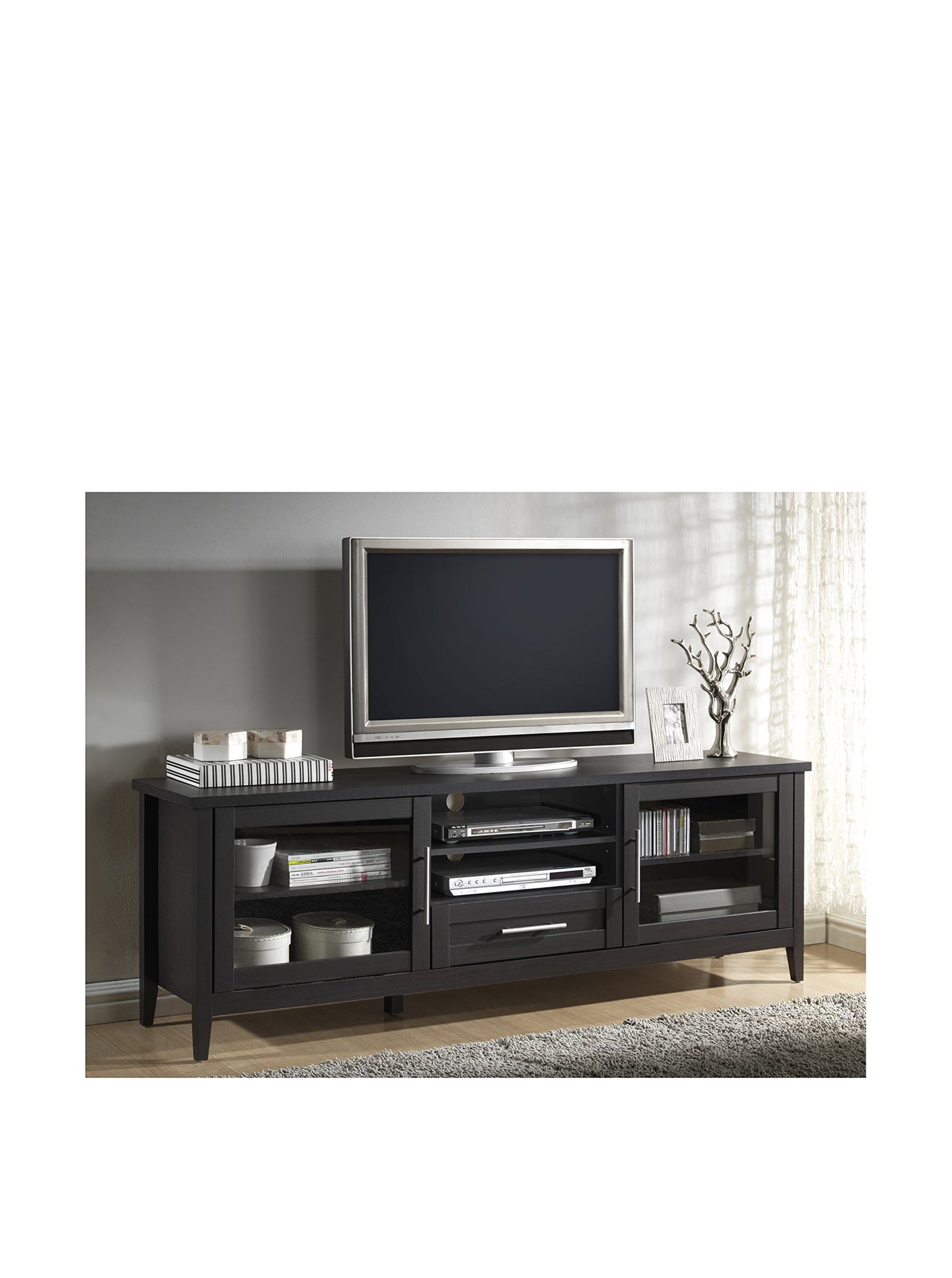 Calling all techies. We all know dust is the enemy of our finer electronic gadgets. That's what makes the one-drawer version of our espresso TV stand a winner with gadget-ophiles. Tempered-Glass cabinet doors help isolate more sensitive electronic items from dust while silver metal hardware is not only functional, it looks super-sharp to boot. Everything you’d want in a contemporary entertainment center is here: solid support for those flat-panel TVs, pre-drilled holes for tidy cable management and a single drawer for miscellaneous audio/visual items. 71.2"W X 15.75"d X 24"h, cabinet-left/right dimension: 8" high x 21.2" Wide x 14.2" Deep Middle top shelf dimension: 21.2" Wide x 4.8" High x 14.75" Deep Middle Buttom drawer dimension: 19.1" Wide x 3.1" High x 13.25" Deep.