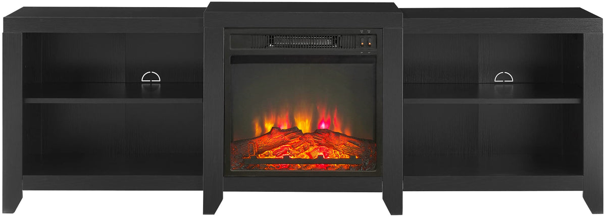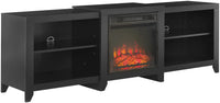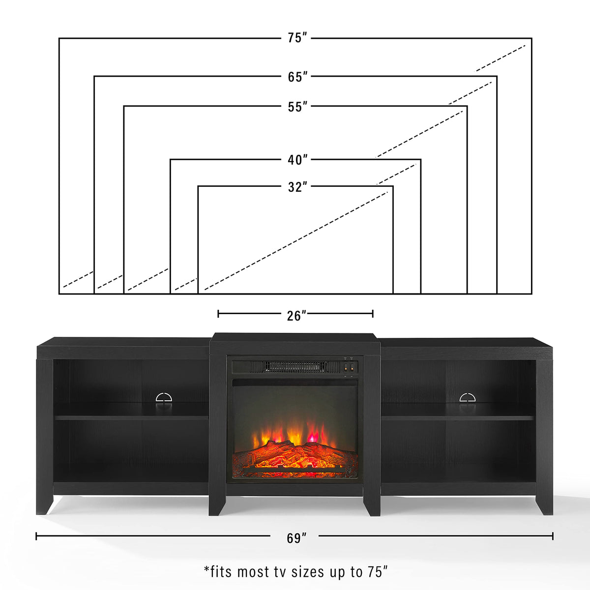 Whether you’re watching the big game or having a family movie night, the Ronin 69” TV Stand with Fireplace is the perfect companion for wall-mounted televisions up to 75”. This extra-wide TV stand offers two open cabinets with adjustable shelving, plus an electric fireplace in the center for staying cozy. With a low-profile silhouette and tapered legs, the Ronin TV Stand with fireplace is a stylish upgrade to a classic entertainment center or media console.