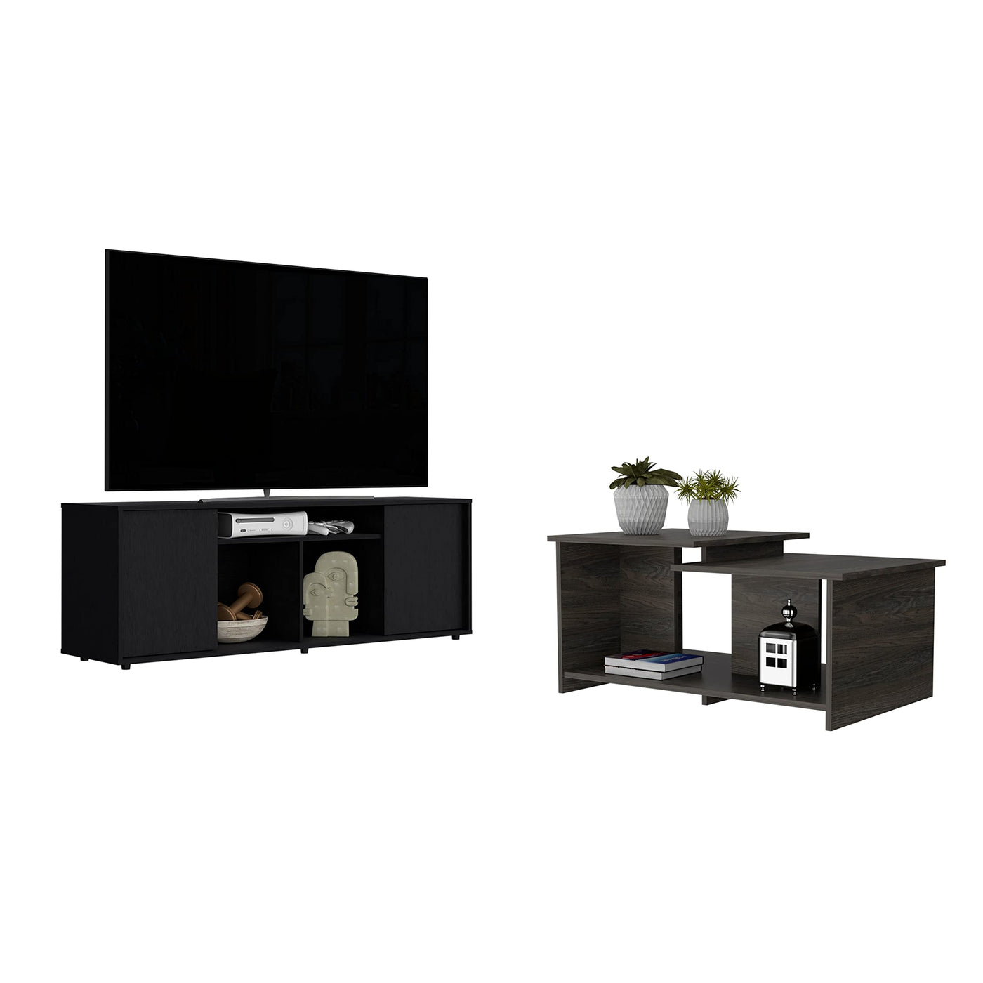Danville 2 Piece Living Room Set, Tv Stand + Coffee Table, Black/Espresso