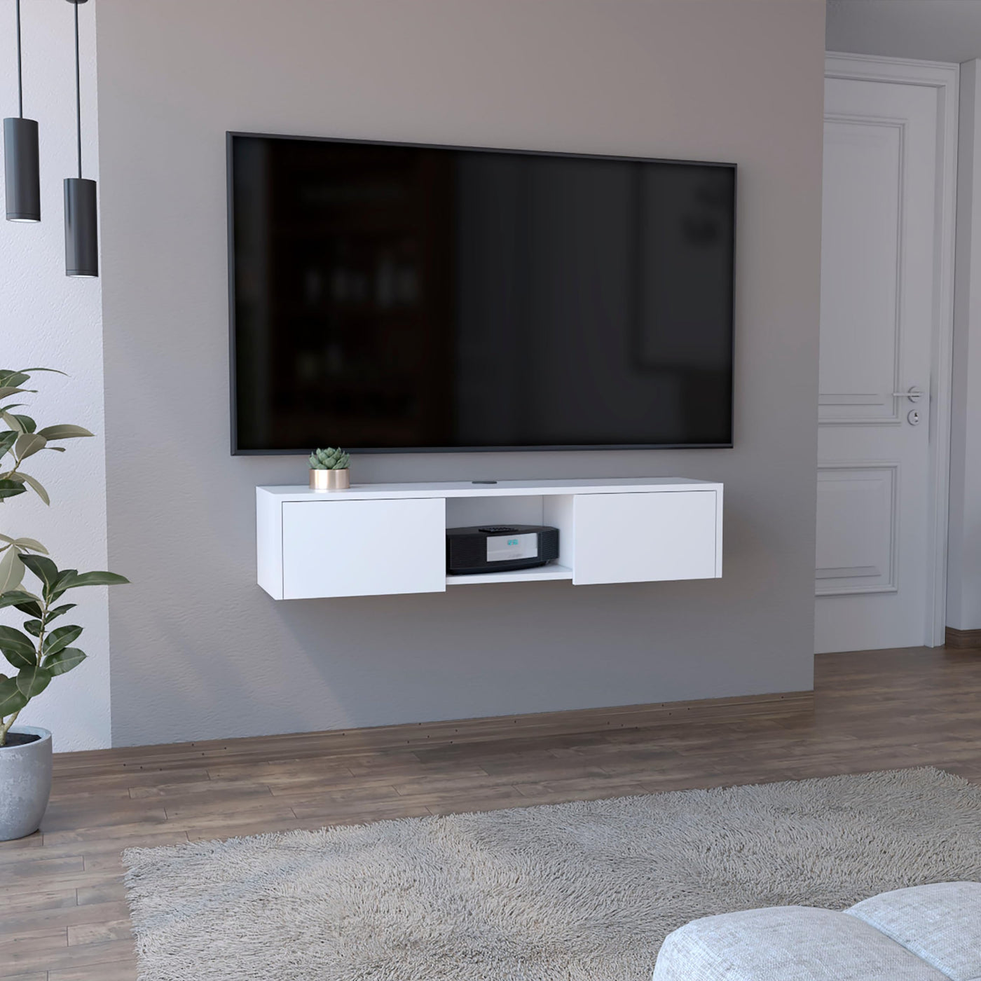 Depot E-Shop Adel Floating Tv Stand, Sleek Wall-Mounted Console With 2-Doors, White
