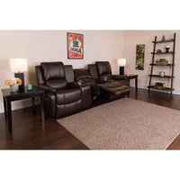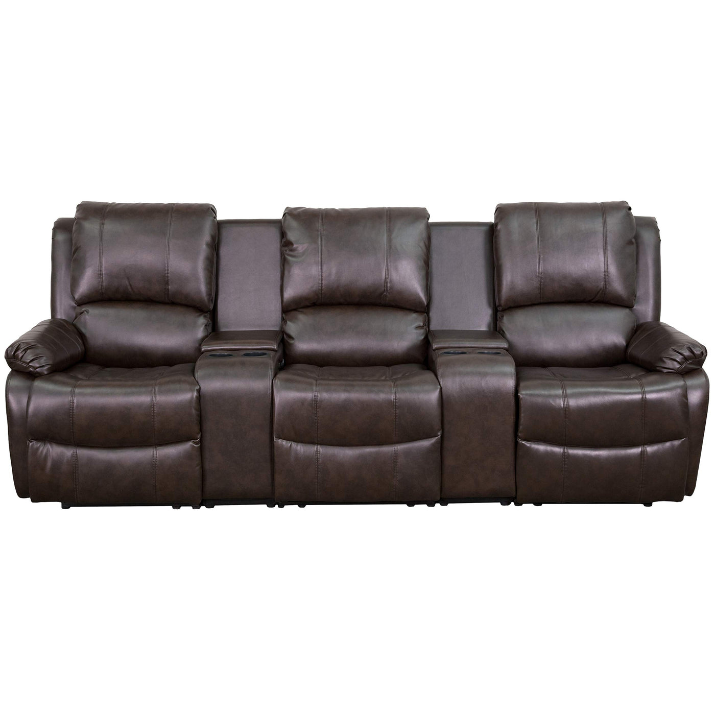 Flash Furniture Allure Series 3-Seat Reclining Pillow Back Brown Leathersoft Theater Seating Unit With Cup Holders