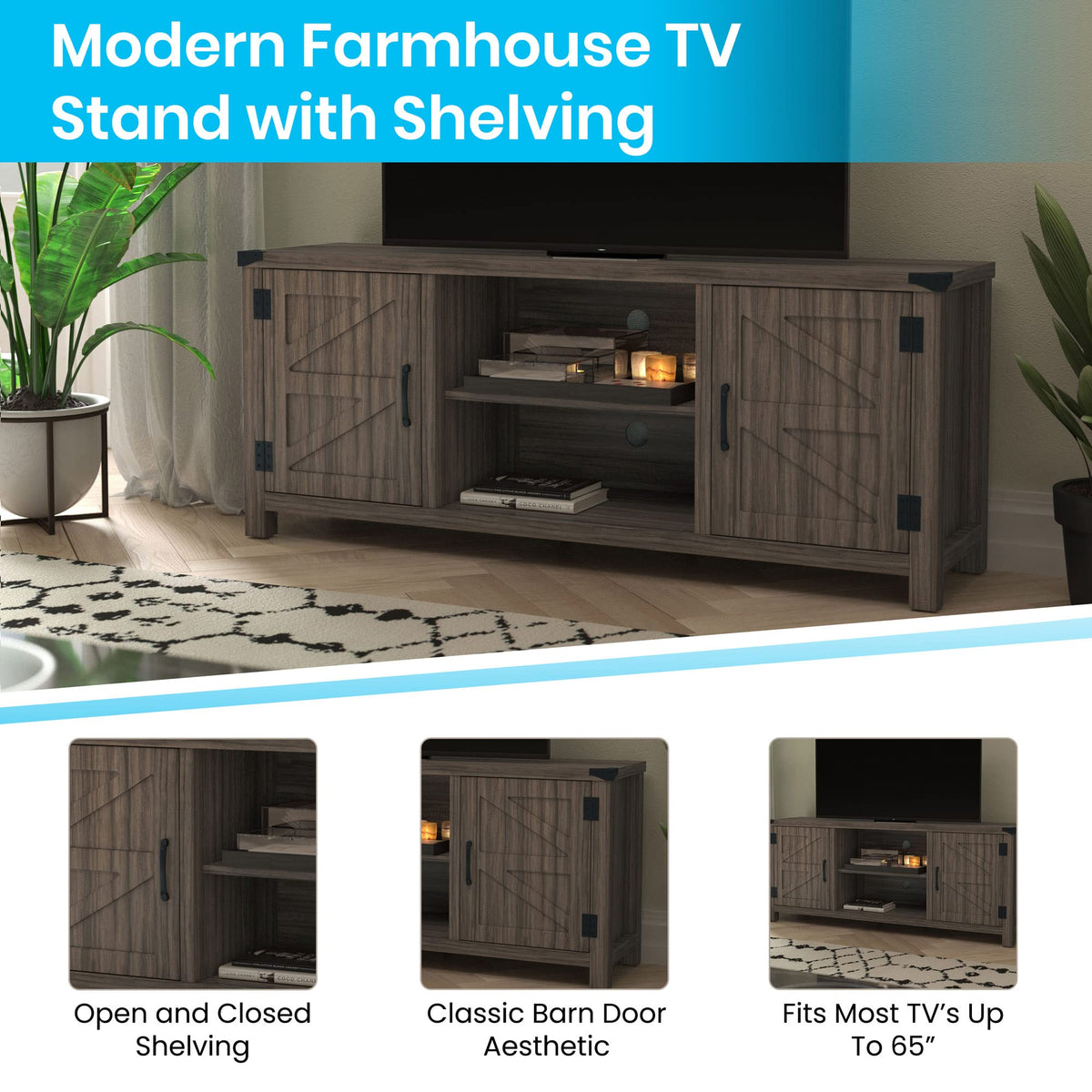 Flash Furniture Modern Farmhouse Barn Door TV Stand - Gray Wash Oak 59 Inch Entertainment Center - For TV's up to 65 Inches - Adjustable Middle Shelf