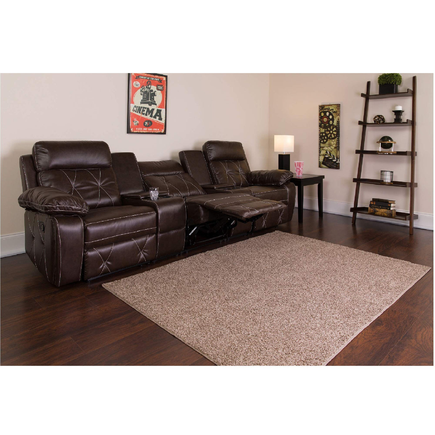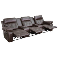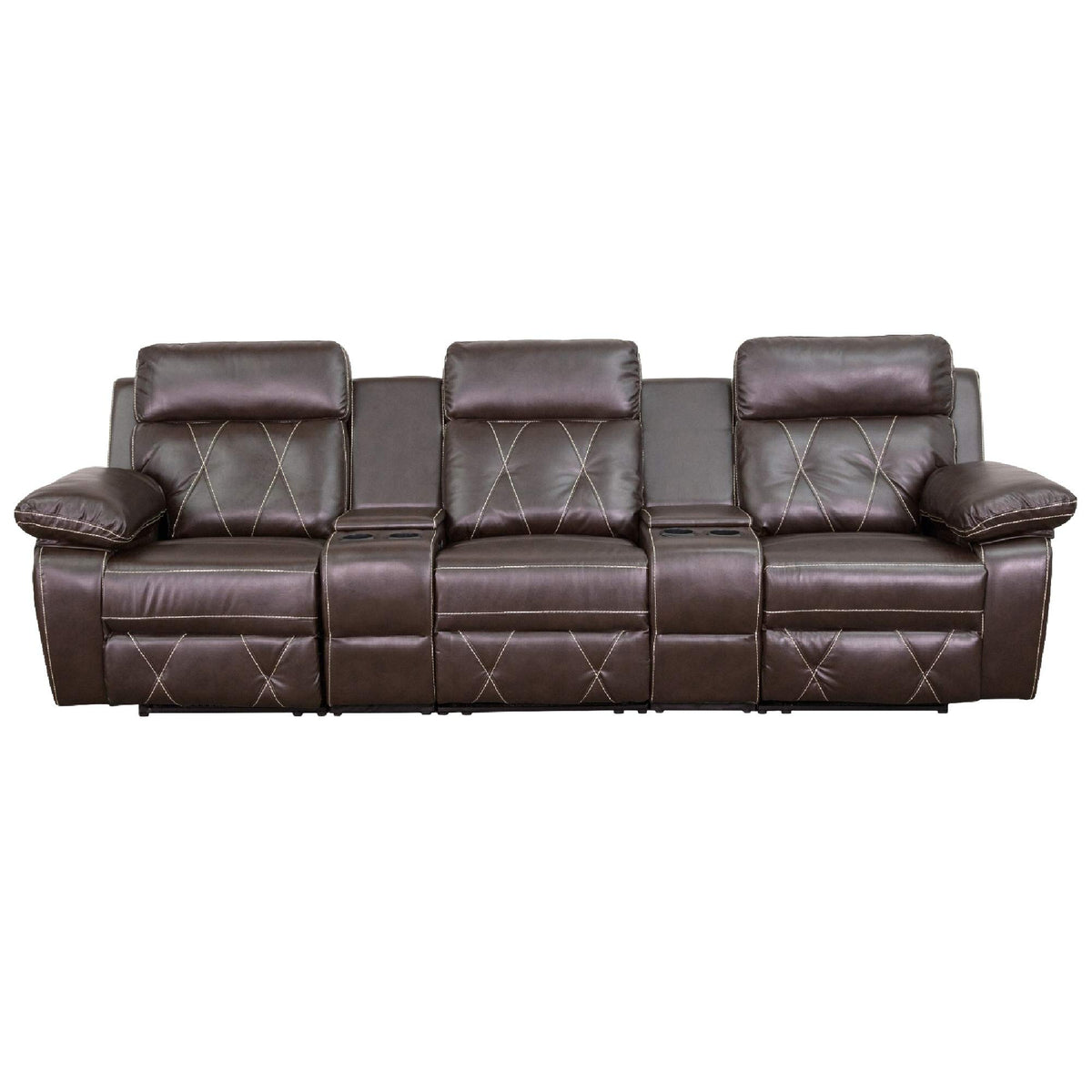 Flash Furniture Reel Comfort Series 3-Seat Reclining Brown Leathersoft Theater Seating Unit With Straight Cup Holders