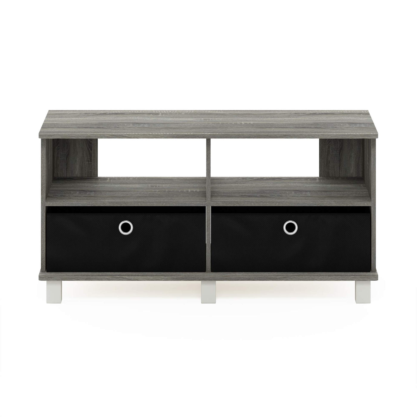 Furinno Andrey Entertainment Center With Bin Drawers, French Oak Grey/Black