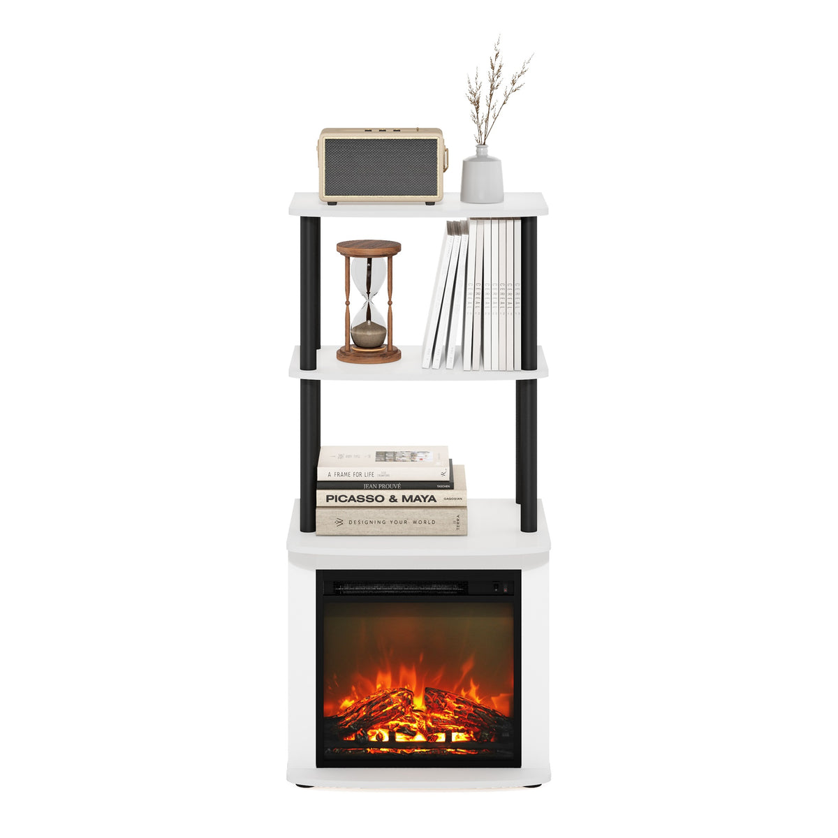 Furinno Turn-N-Tube 2-Tier Tall Tv Entertainment Side Table Display Rack With Fireplace Insert, Solid White/Black