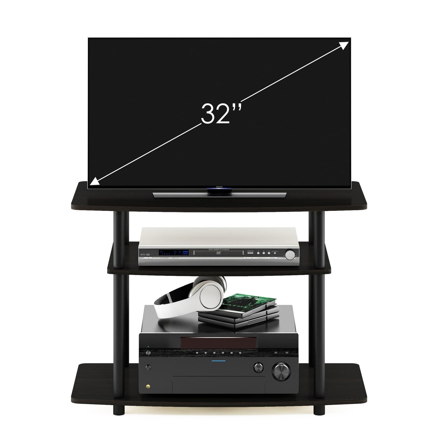 Furinno Turn-N-Tube No Tools 3-Tier Entertainment Center TV Stand for TV up to 32 Inch, Plastic Round Tubes, Espresso/black