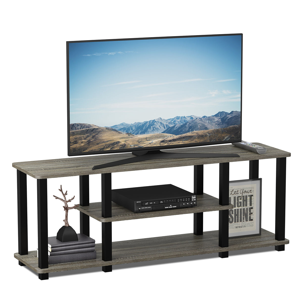 Furinno Turn-N-Tube No Tools 3D 3-Tier Entertainment Tv Stand Up To 50 Inch Tv, Square Tubes, French Oak Grey/Black
