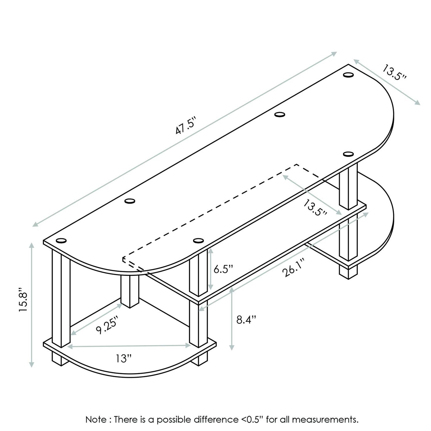 FURINNO turn-s-tube home living storage and organization Series: No tools wide Entertainment center. FURINNO design motto is: fits in your space and fits on your budget. This Series of product consists of the following features: (1) unique structure: open display rack, shelves provide easy storage and display of TV or other audio/video accessories. Suitable for any rooms. Designed to meet the demand of low cost but durable and efficient furniture. It is proven to be the most popular RTA furniture due to its functionality, price and the no hassle assembly. (2) smart Design: easy assembly and no tools required. A smart design that uses durable recycled PVC tubes and engineered particleboard that withstand heavy weight. Just repeat the twist, turn and stack mechanism and the whole unit can be assembled within 10 minutes. (3) The particleboard is manufactured in Malaysia and comply with the Green rules of production. There is no foul smell, durable and the material is the most stable amongst the particleboards. The PVC tube is made from recycled plastic and is tested for its durability. A simple attitude towards lifestyle is reflected directly on the design of FURINNO furniture, creating a trend of simply nature. All the products are produced and assembled 100-percent in Malaysia with 95% - 100% recycled materials. Care instructions: wipe clean with clean damped cloth. Avoid using harsh chemicals. Pictures are for illustration purpose. All decor items are not included in this offer.