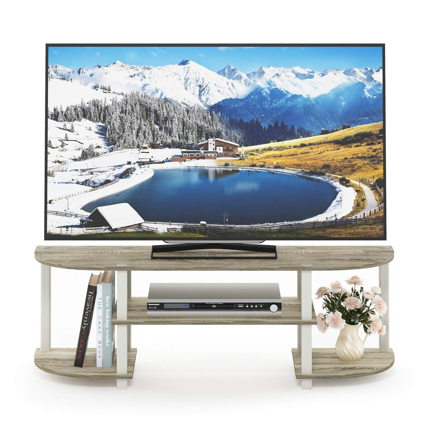 Furinno Turn-S-Tube Wide TV Entertainment Center, Sonoma Oak/White, 47. 25x13. 4x15. 9
