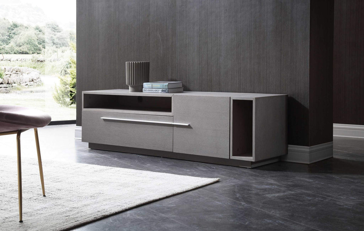 Craft the ideal blend of style function and design with this contemporary style TV stand Its a classy piece made of high quality materials Its grey color and veneer finish are nothing to scoff at either This TV stand an ultimate instrument to present a bit of freshness into your place This TV stand also blends being overall stunning with being practical Beyond just being perfect for your TV theres no better place for your video collections or video games board games electronics or media accessories This TV stand would be ideal for your living room for example You can match it with other decorations to get an ideal look for your spaceFeatures. 67 x 17 x 185 in Gray Oak Veneer TV Unit. Made from high quality materialsSpecifications. Height 185 Inches. Width 67 Inches. Depth 17 Inches. Material Wicker. Color Gray Oak. Finish Veneer. Style Contemporary Modern. Weight 139 lbs