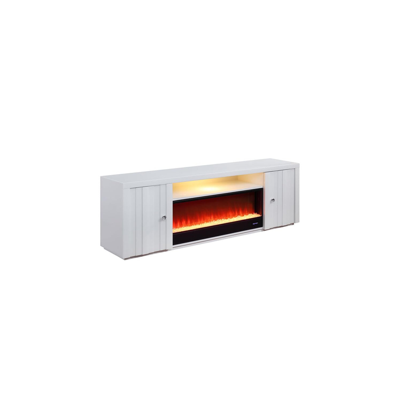 LILOLA LIVING Reid White Finish TV Stand with Fireplace and Speaker
