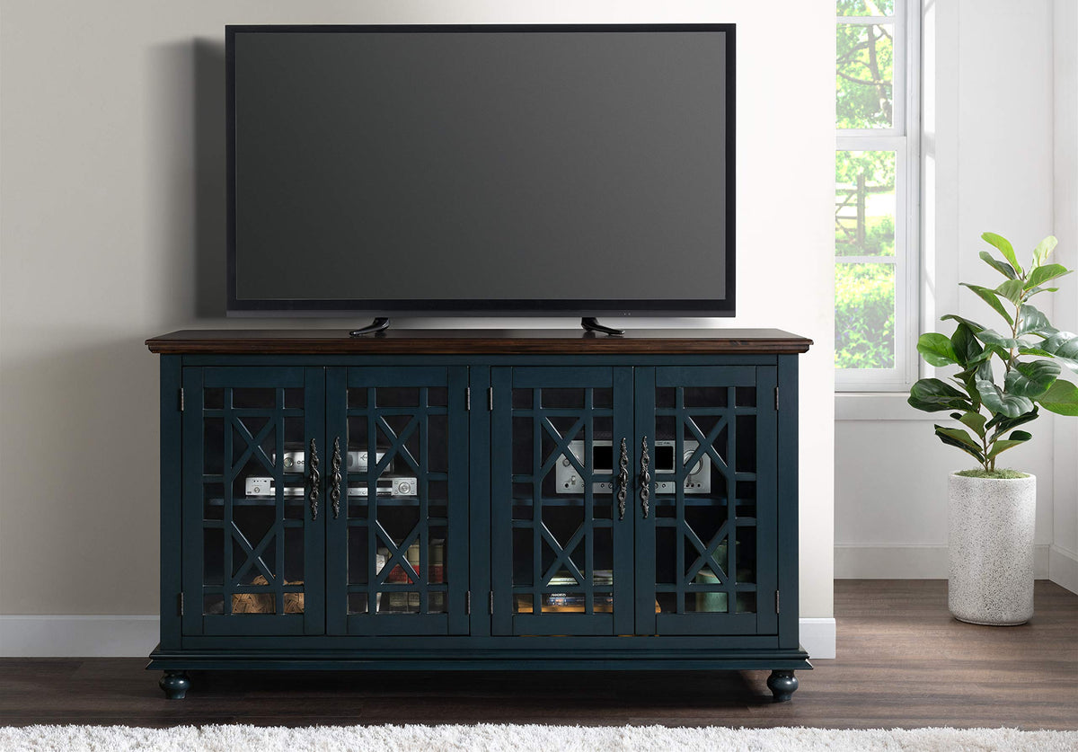 Martin Svensson Home Palisades Tv Stand, 63" W X 35" H, Catalina Blue With Coffee Top