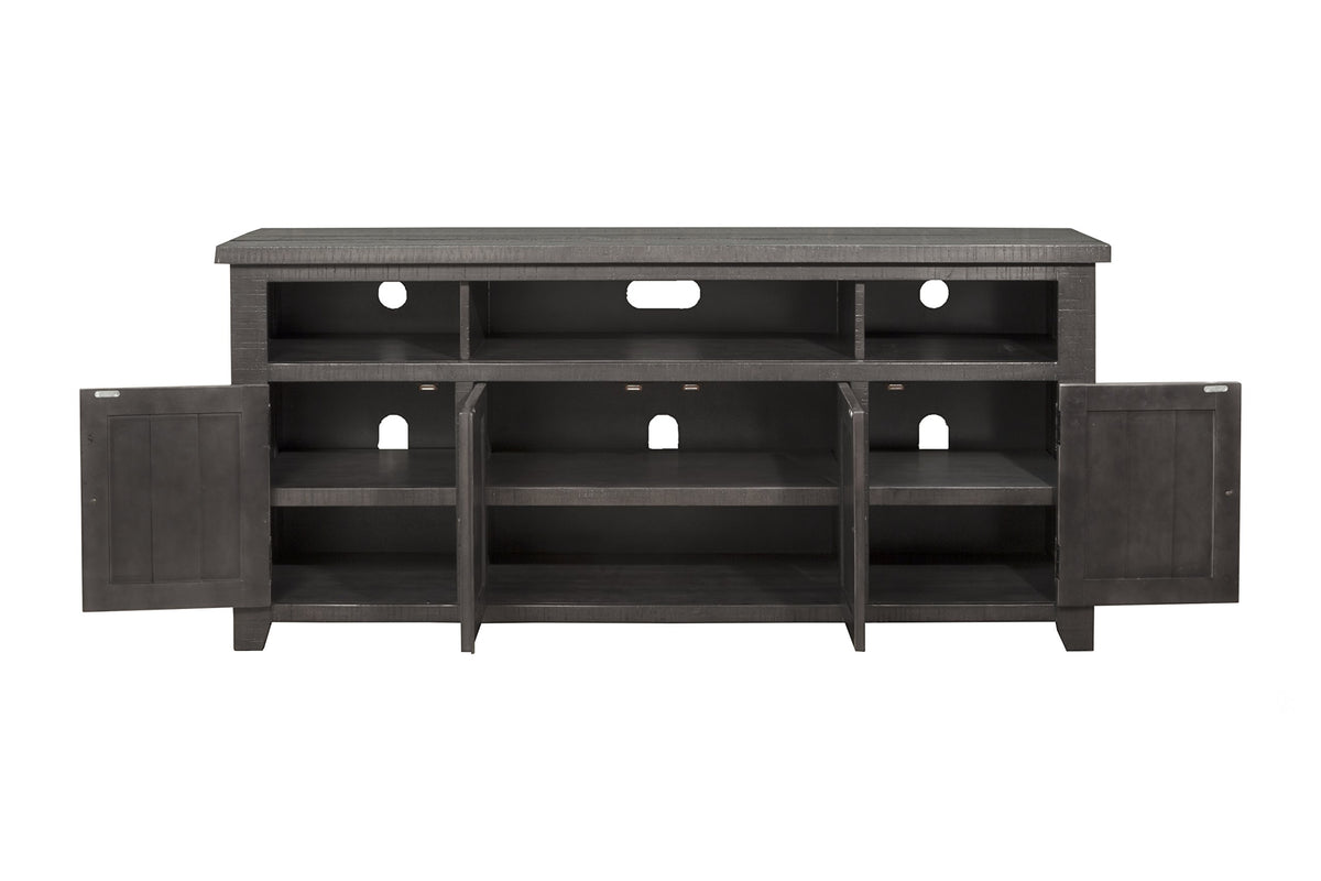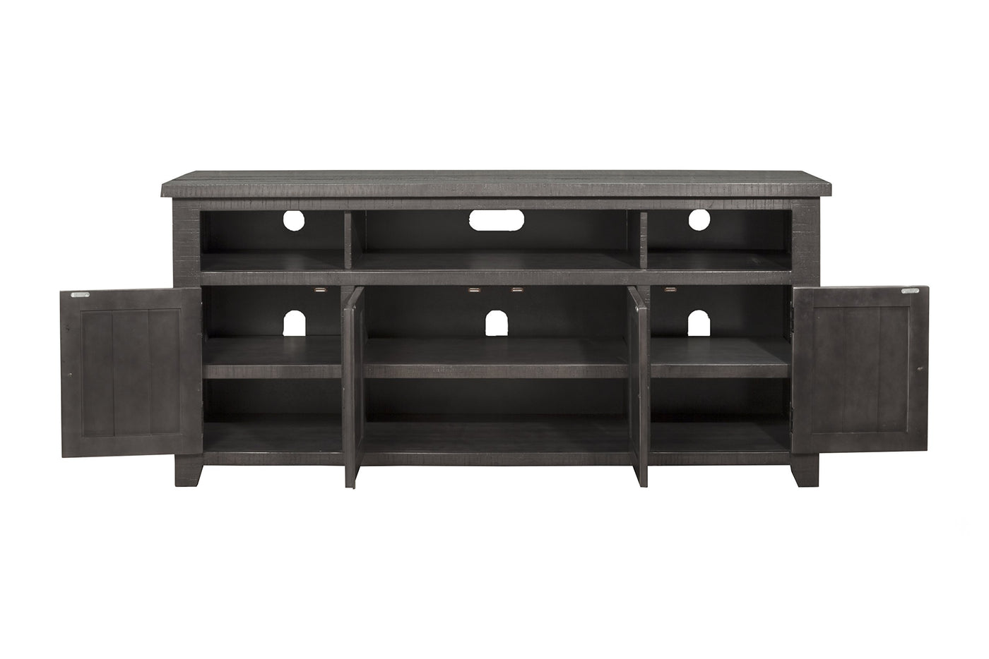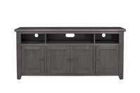 The West Mill Tv Stand Is A Farmhouse Style Tv Stand Finished In A Beautiful Grey. Now Features The Lightning Fast Assembly System: Easy, Quick, And Tool Less Assembly Process Allows For The Tv Stand To Be Assembled In 10 Minutes Or Less. Constructed From Solid New Zealand Radiata Pine Wood Which Gives It The Look Of Reclaimed Lumber With Rough-Hewn Saw And Distress Marks. Three (3) Large, Open Component Cubbies Allow For Plenty Of Space To Store Tv, Video, Audio And Video Game Components. A Total Of Four (4) Doors Give Access To Three Cabinets, One Large Middle Cabinet And Two Smaller Cabinets On Each Side. Each Cabinet Features One Adjustable And Removable Shelf Along With Vertical Wire Management Cutouts. The Recessed Campaign-Style Door Pulls Feature A Complementing Brass Finish To The Espresso Finish. Ideal For Most 65" Flat Panel Tvs And Up To 70". Anti-Tip Kit Added For Safety. Assembled Product Dimensions: 65" L X 30" H X 19" D