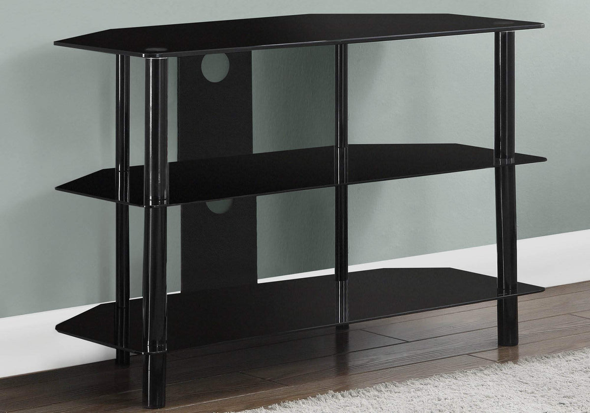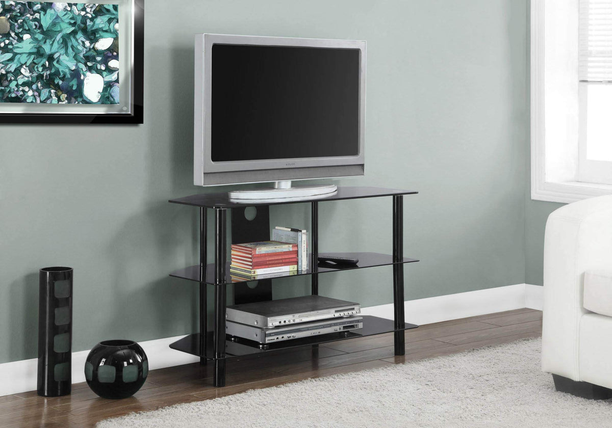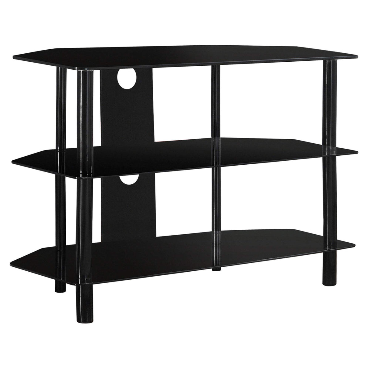 Monarch Specialties Black Metal TV Stand with Tempered Black Glass, 36-Inch