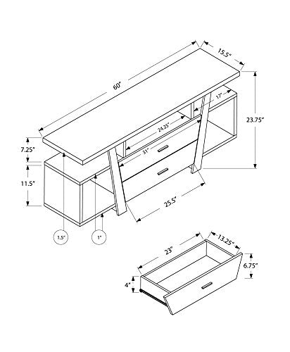 Monarch Specialties Cappuccino With 2 Storage Drawers Tv Stand, 60", Brown