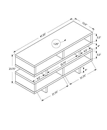 Modernize your space with this open-concept, contemporary designed, bright white TV console. With a thick panel design and 5 open concept shelves perfect for storing electronic components or displaying your favourite decorative items, this TV stand is a must have in any home. Accommodates all TV sizes with a center stand.