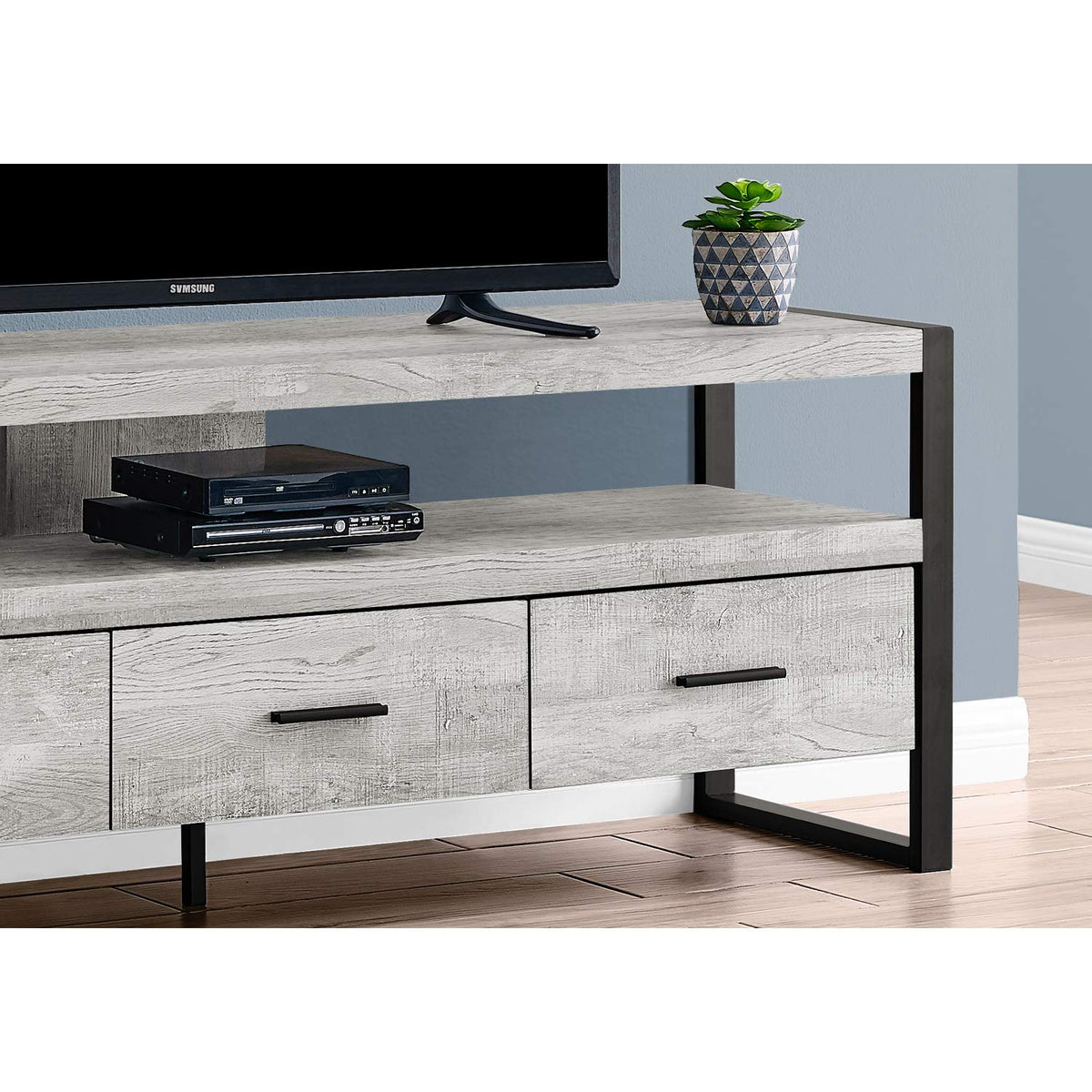 Monarch Specialties TV Stand-Console with 3 Drawers and Shelves-Industrial Modern Style Entertainment Center with Metal Legs, 60' L, Grey Reclaimed Wood Look