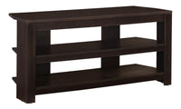 Enhance The Look Of Your Contemporary Living Space With This Corner Concept Tv Stand. Constructed With Thick Panels In A Modern Cappuccino Finish, This Tv Stand Can Be Used Against Any Wall Or Will Perfectly Fit Into A Corner As A Great Space Saving Solution. With Fixed Open Concept Shelves Ideal For Your Media Storage Needs, This Tv Stand Is A Must Have For Any Home. Will Accommodate Up To A 42" Flat Panel Tv.